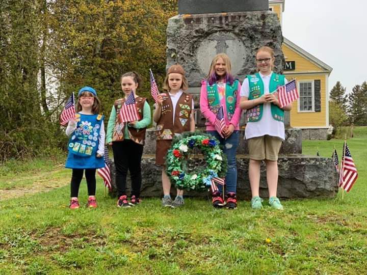 Planning meetings were held as early at 1889 to consider the erection of a Soldier's Monument. In the fall of 1915, a concrete foundation was made on the lot, which had been leased to the town, in front of the vestry. On December 7 the monument was hauled onto the grounds under the supervision of O.S. Tarbox of the Red Beach Granite Company. The work was completed December 9. The Soldier's Monument was dedicated on August 9, 1916, with Col. E.E. Milliken of Portland as guest speaker. Other participants were Ida (Vose) Woodbury, Julia Gardner, and Edwina Cambridge. Music was furnished by the Machias Band. In addition to local citizens, a number of non-residents, including veterans, were in attendance.Collection