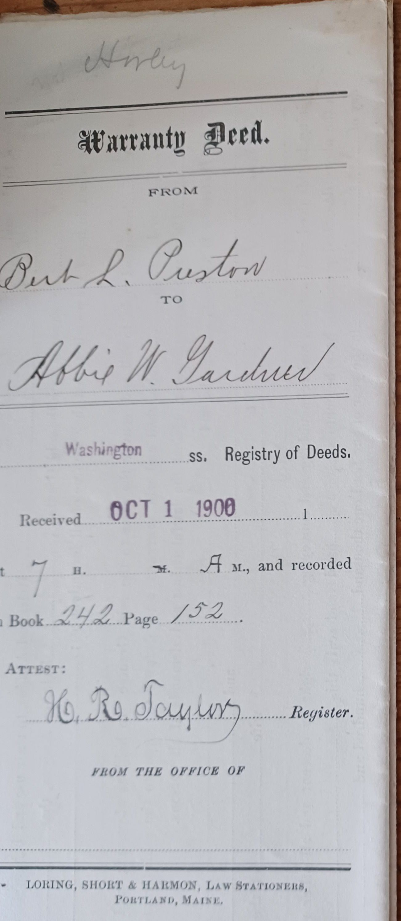 Deeds and other property records of the A.L.R. Gardner Co. and Gardner family members.Collection