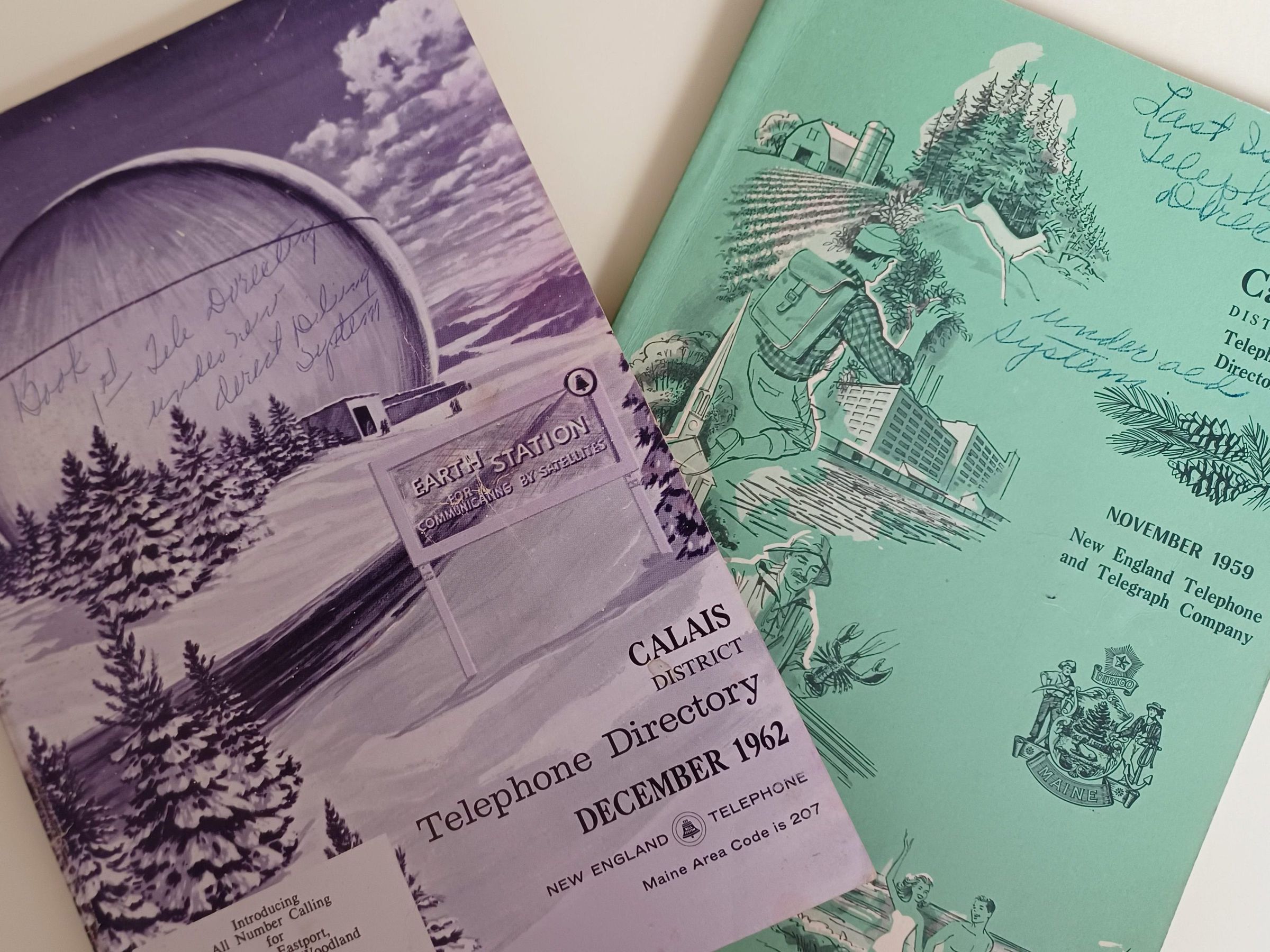 Two telephone directories that include listings for Dennysville and Edmunds under Pembroke. The directory also includes numbers for Canadian subscribers in St. Stephen and on Grand Manan Island.Collection
