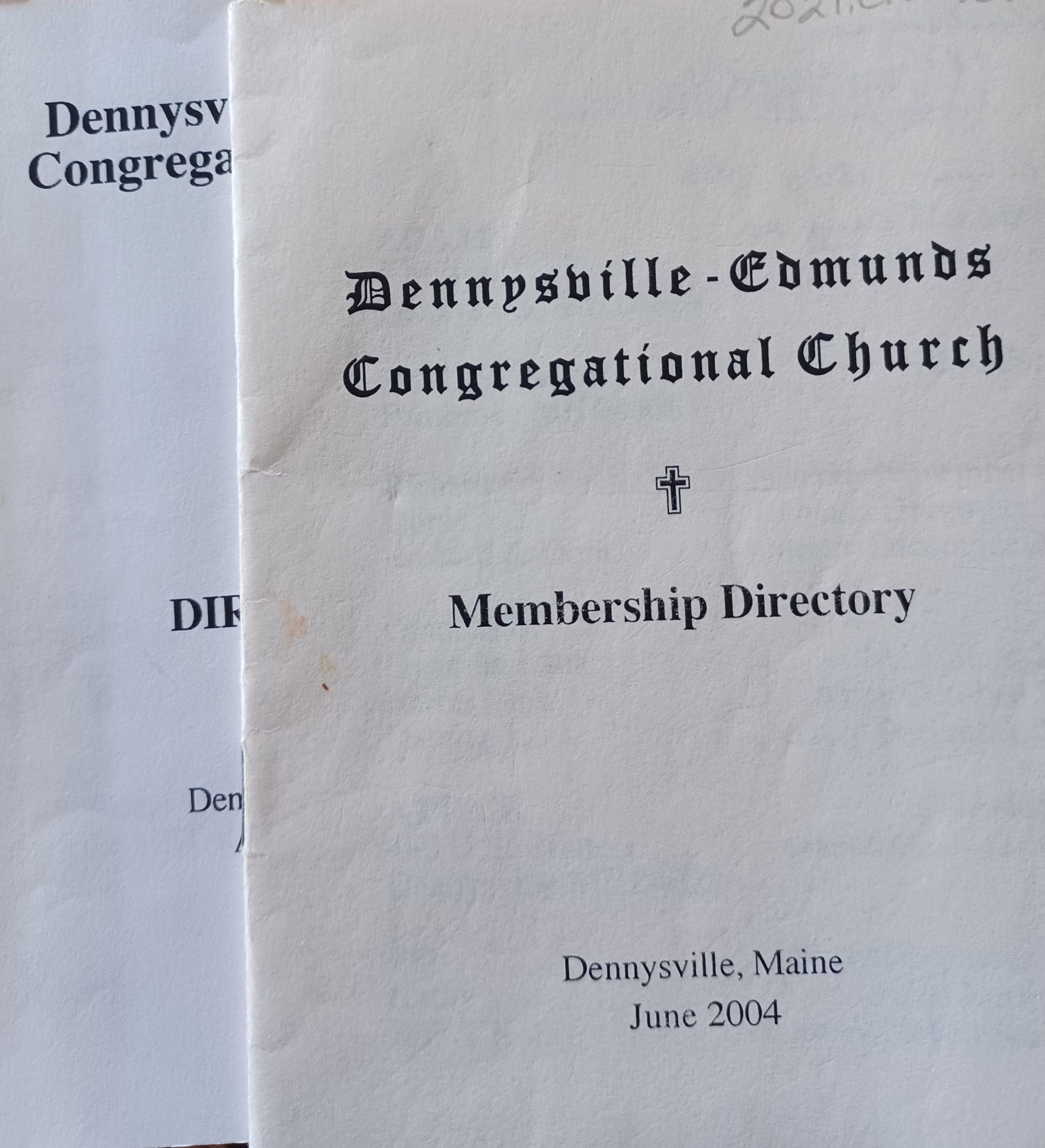 Two booklets listing members of the Dennysville-Edmunds Congregational Church in Dennysville, Maine for 2004 and 2010.Lexicon