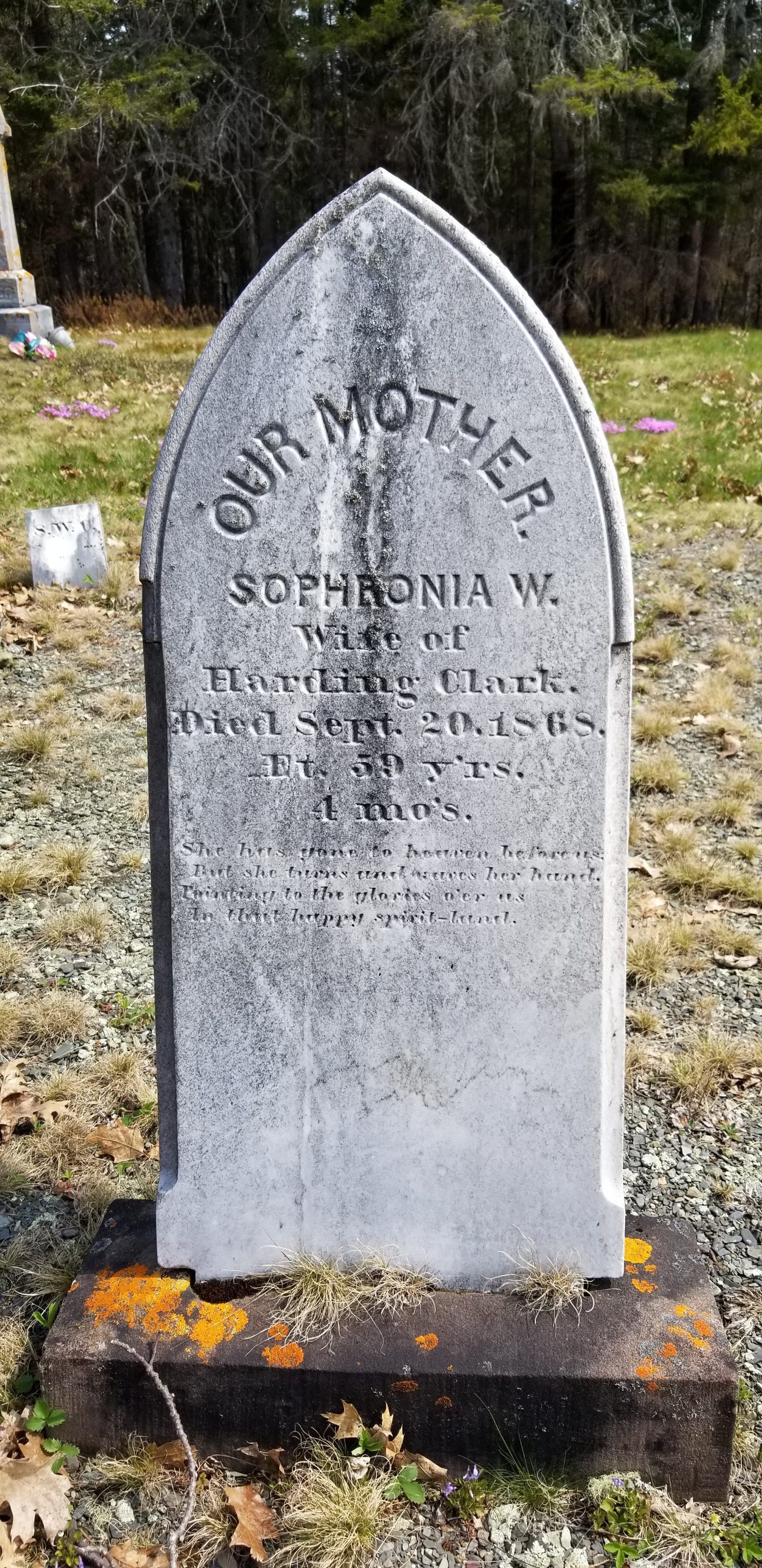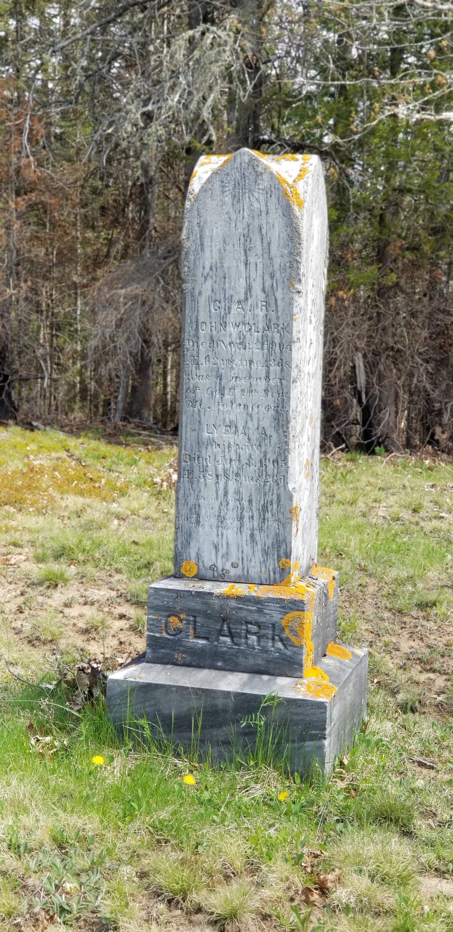 Clark Side Cemetary, located on Leighton Point, Pembroke, Maine, with the graves of many early and recent residents of the peninsula in what was originally Township No. 2, including Willburs, Leightons, Clarks, Dudleys, and Mahars.Collection