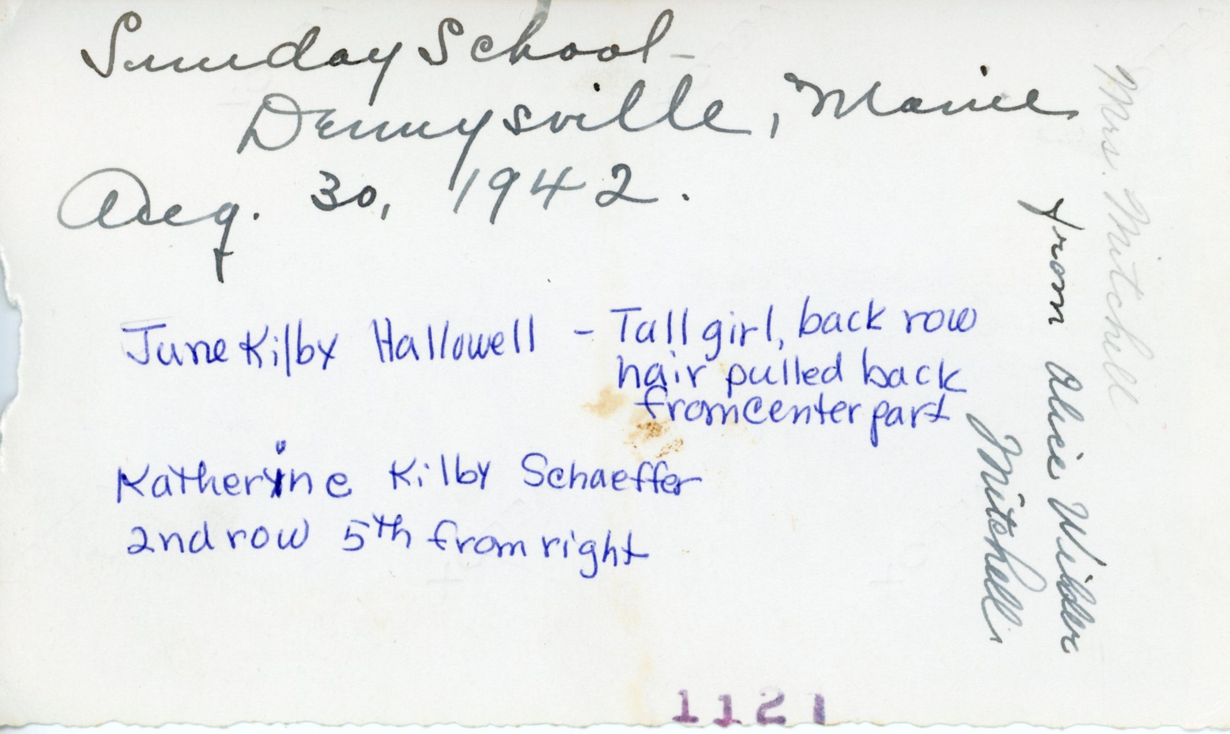 Dennysville Congregational Church Sunday School August 30, 1942. Picture taken at the Vestry.
