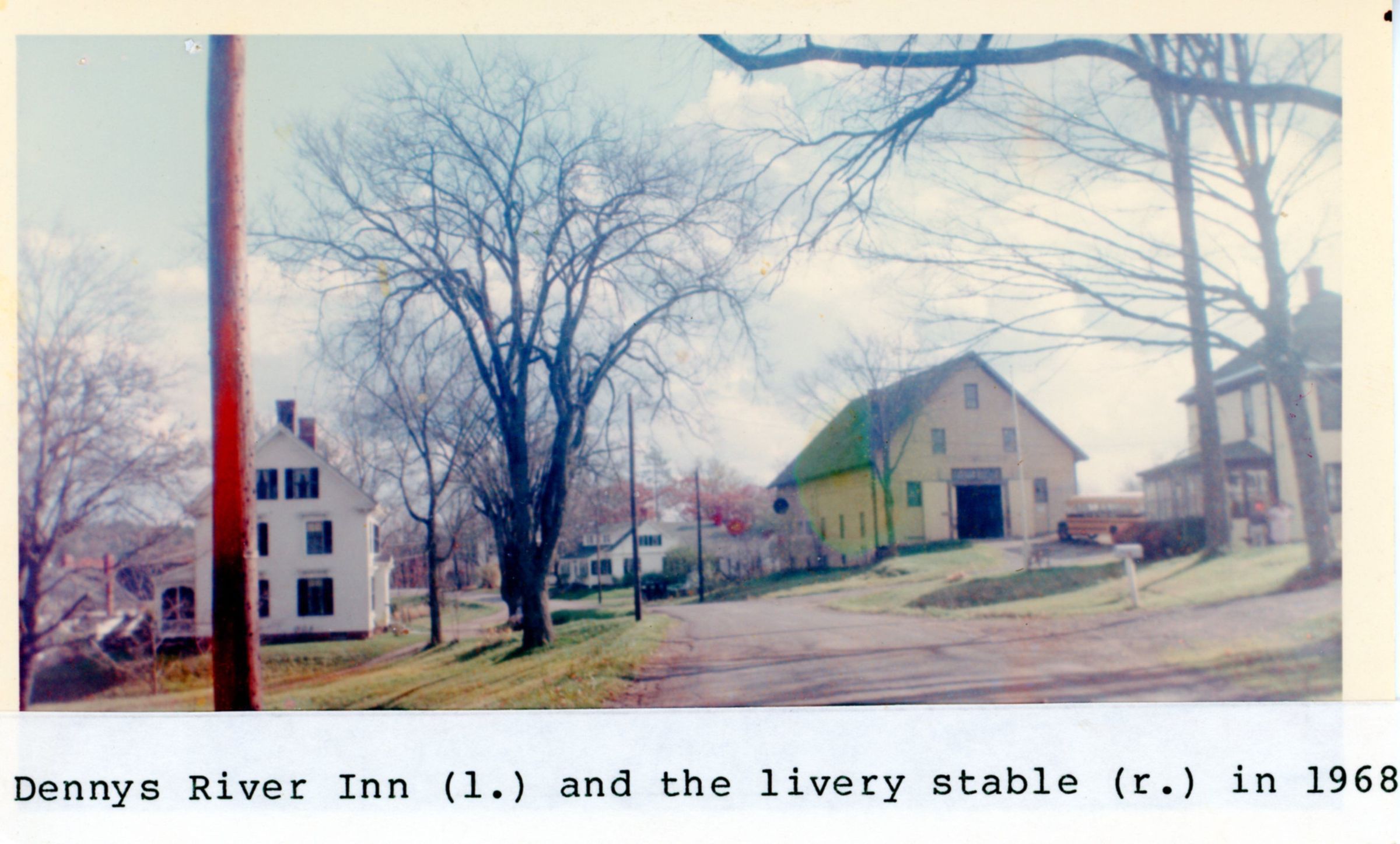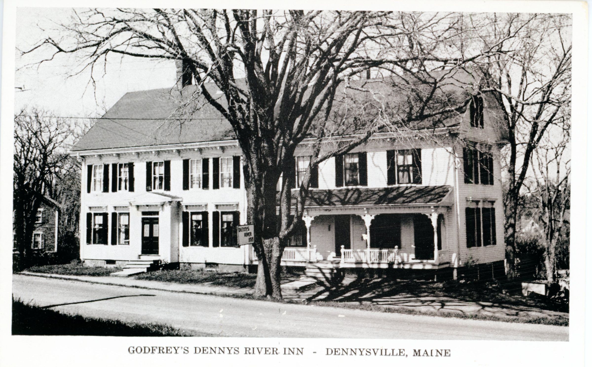 This was the home of Ebenezer C. Wilder, Sr. The next owner was his son, Ebenezer C. Wilder Jr. followed by John Davis Allen, who ran the establishment as "Allan's Hotel." In 1896 J. D. Allan tore down the original E. Wilder house and replaced it with this handsome, two-story residence and new livery stable across the road. From at least the 1950's and into the mid 1960's it was operated as The Dennys River Inn by the Godfreys followed by Blanche Reed.Context