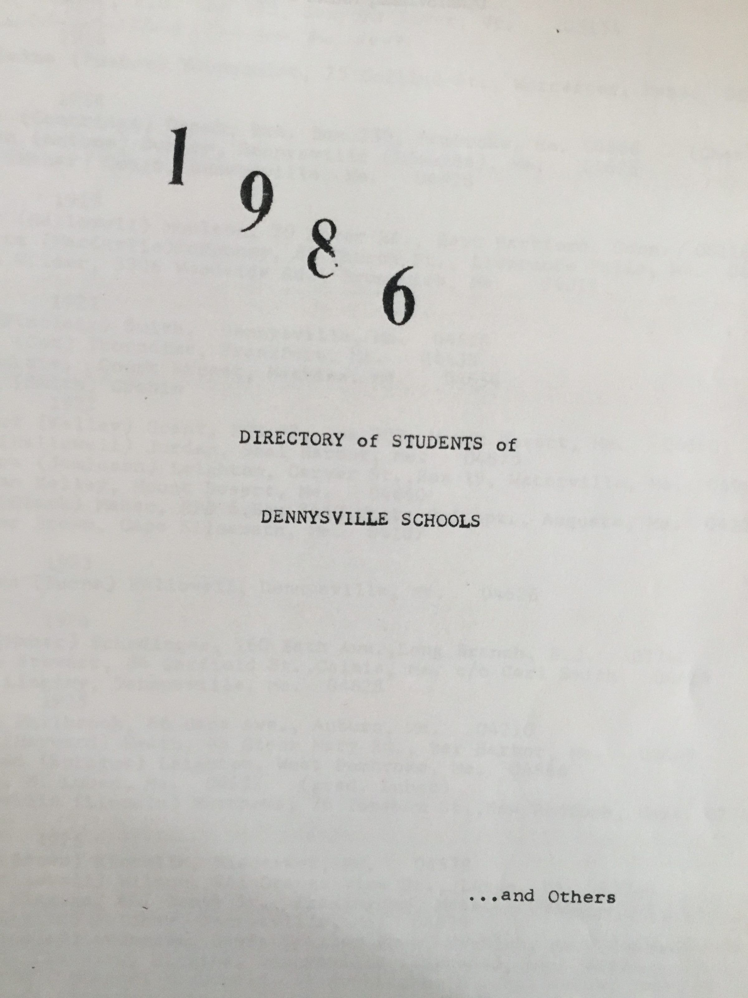 Directory of Students of Dennysvile Schools ... and OthersScope and Content