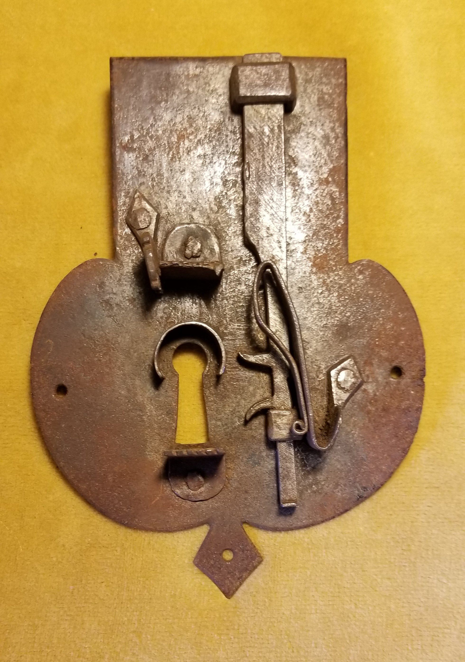 View of the mechanism of a mid-eighteenth century French iron lock found in Dennysville, Maine.