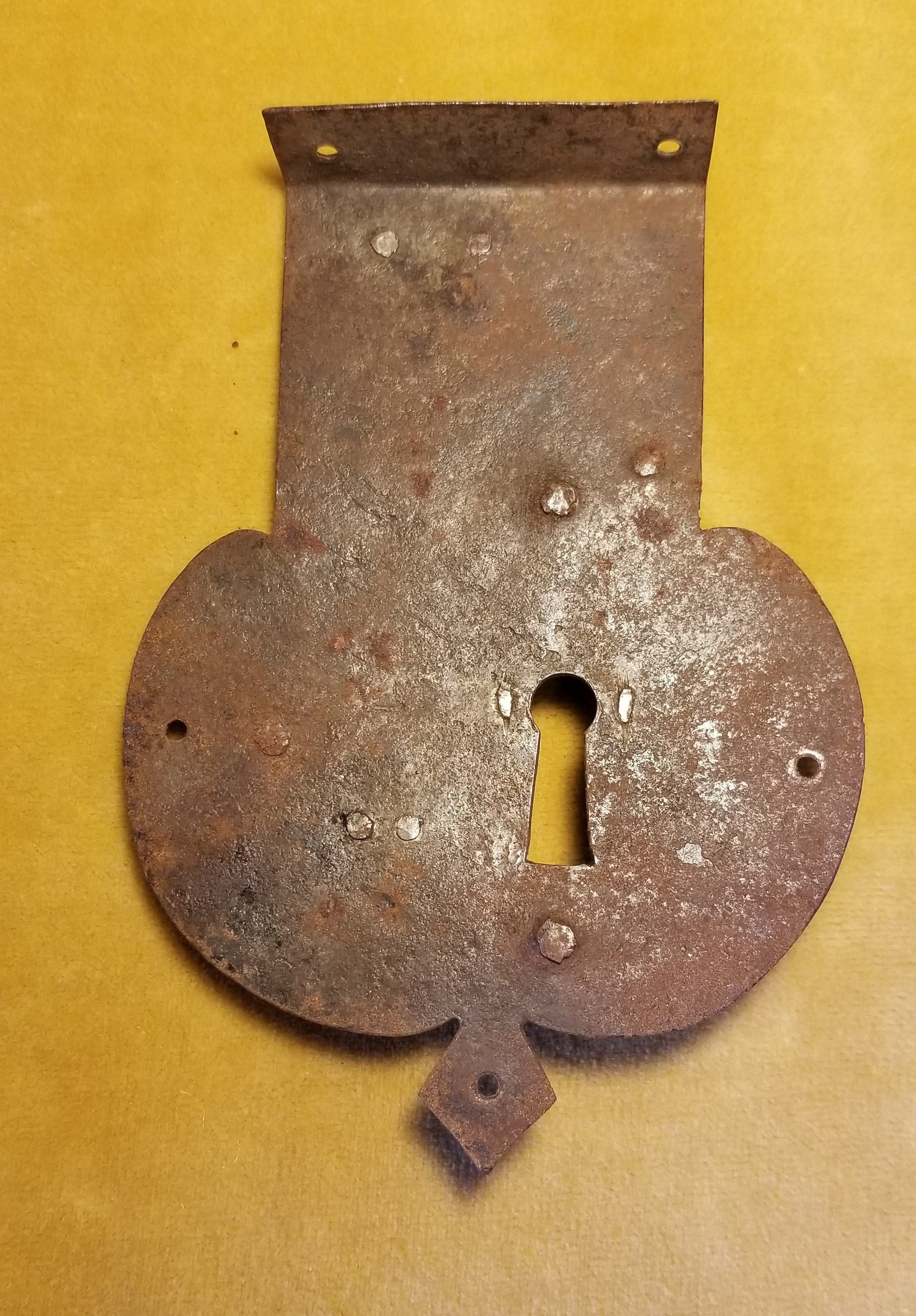 A mid-eighteenth century French iron lock, found in the John Kilby house in Dennysville, Maine.