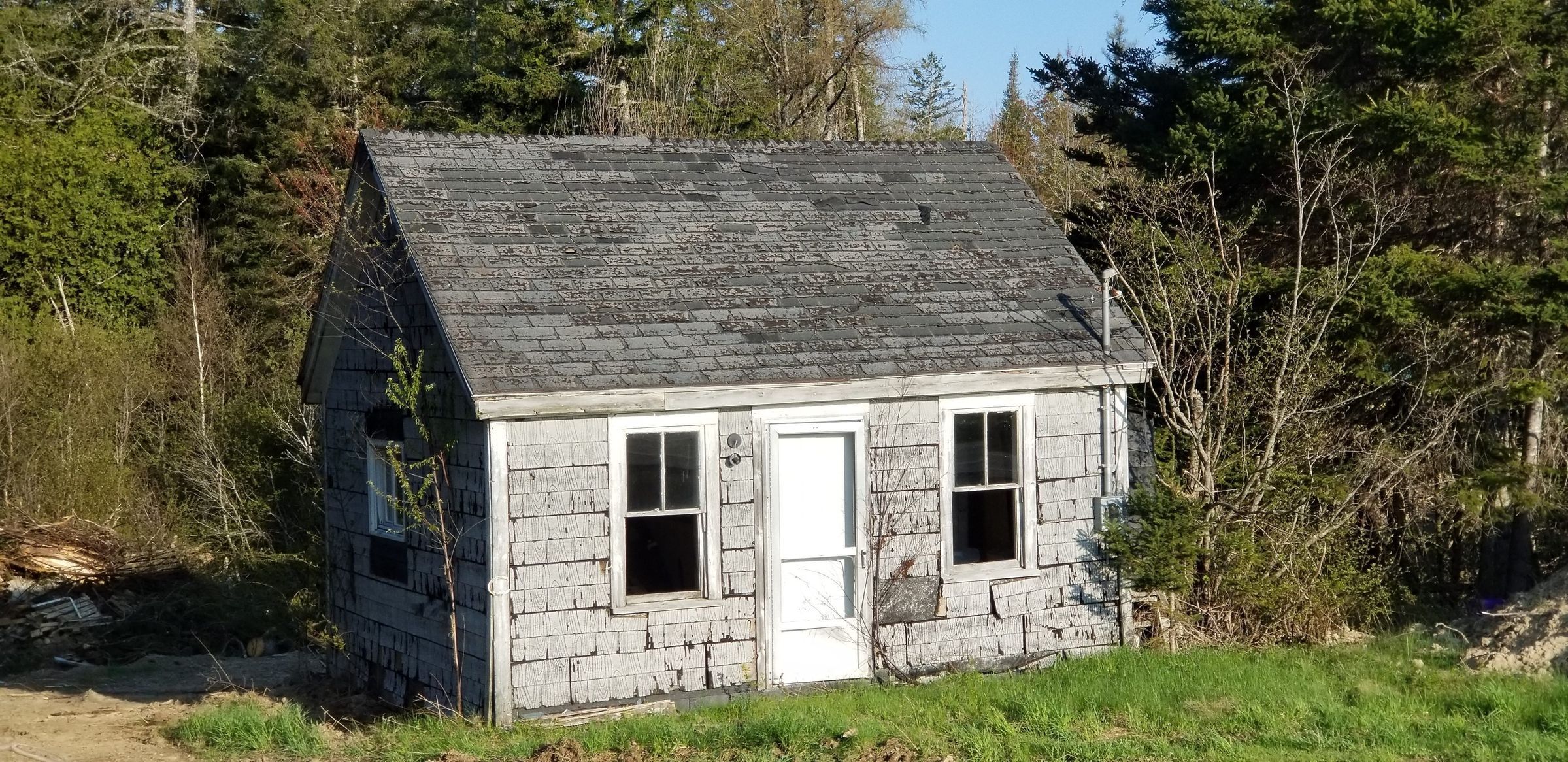 View of the diminutive Hawkes House on U.S. Route 1, in Dennysville, Maine. It belonged to the father of Gordon Hawkes, who operated a feed store and dairy business for many years on Route 214 in Pembroke.Context