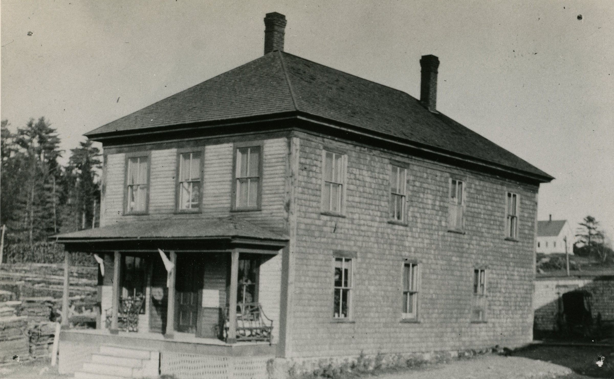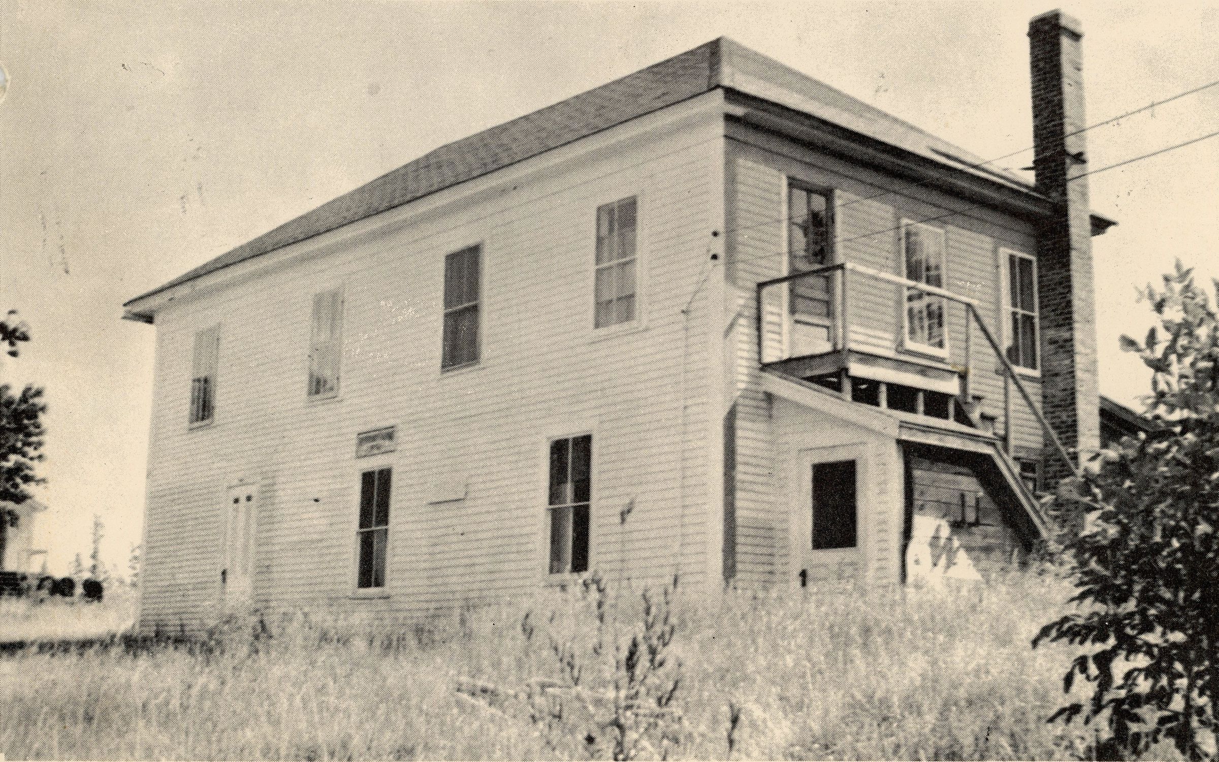 Hodgdon's Garage, Bunker Hill Road, Edmunds. This building was originally built as a boarding house for its millworkers by the Dennysville Lumber Company. After Ken Hodgdon moved his car repair business to the John Allan's old Livery stable on the Lane in Dennysville in the 1930's, it served as the meeting hall for the Dennys River Grange, until they disbanded in 1974.Collection