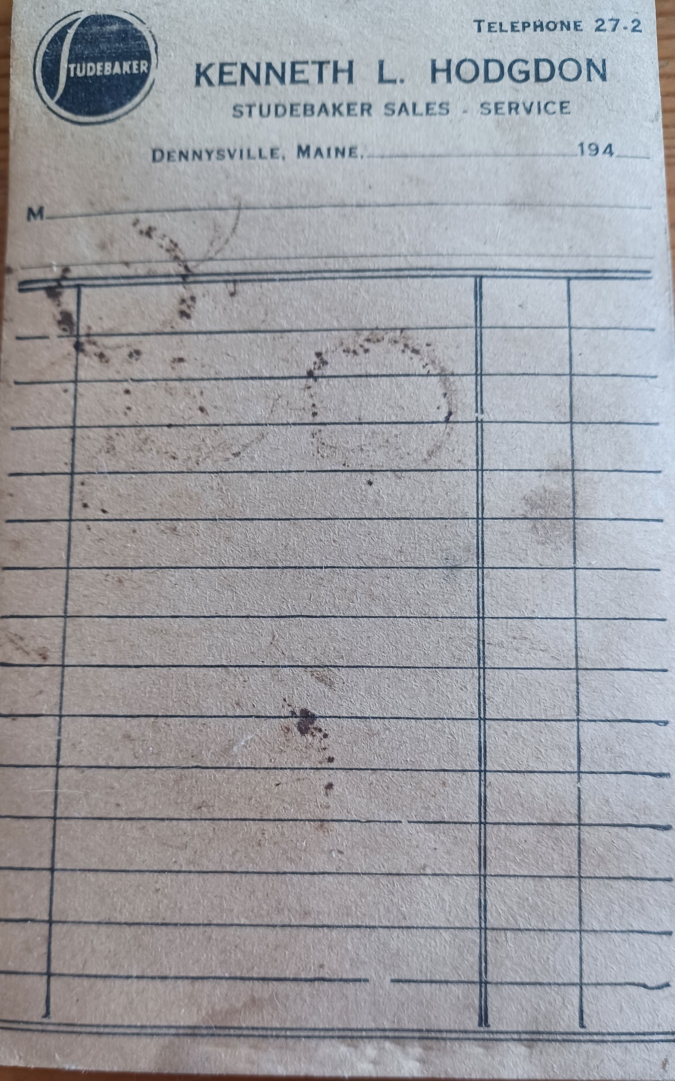 *Hodgdon's Garage recipt and invoice padDate(s) of Creation