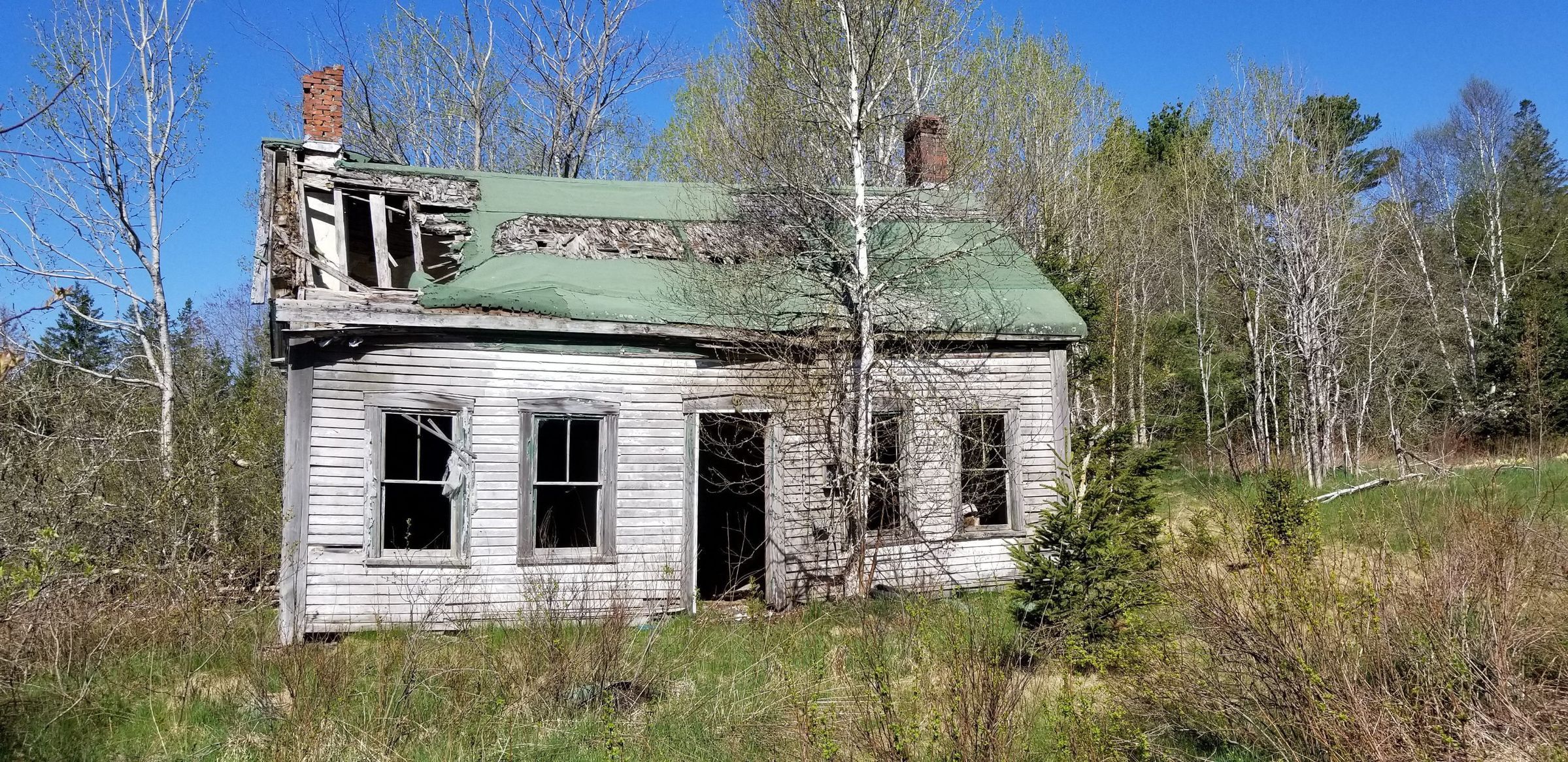 J. N. Anthony House, Dennysville, Maine. Now derelict, the home's last resident was Nelson Anthony. The property spans the town line between Dennysville and Pembroke.Context