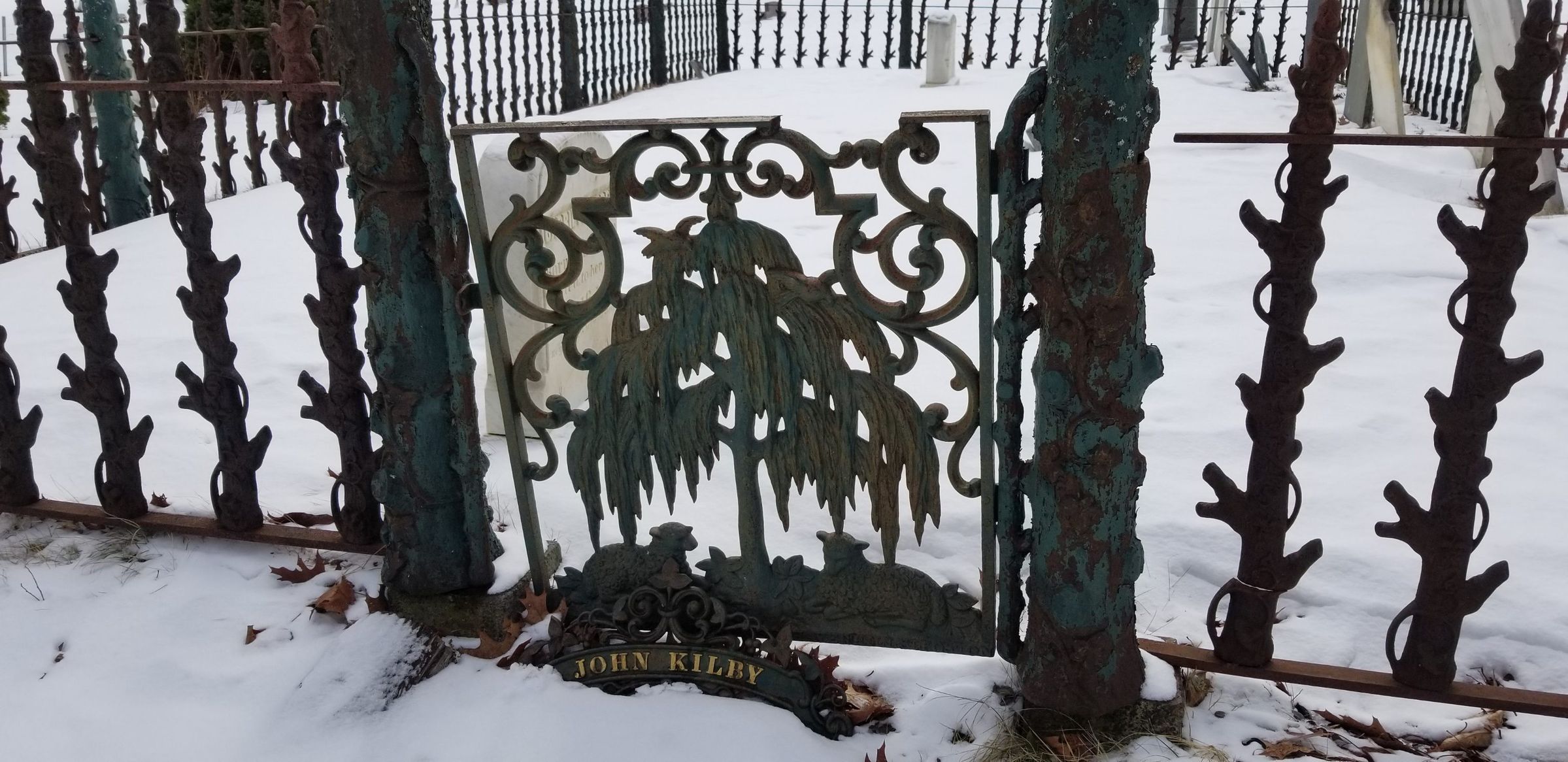 Deacon John Kilby created this elaborately fenced gravesite for members of the Kilby family, around the graves of his parents, Dea. William (d. 1829) and Mary (Wilder) Kilby (d. 1834), with some of their children and descendants. John and his own wife Lydia C. (Wilder) Kilby are buried there, also.Collection
