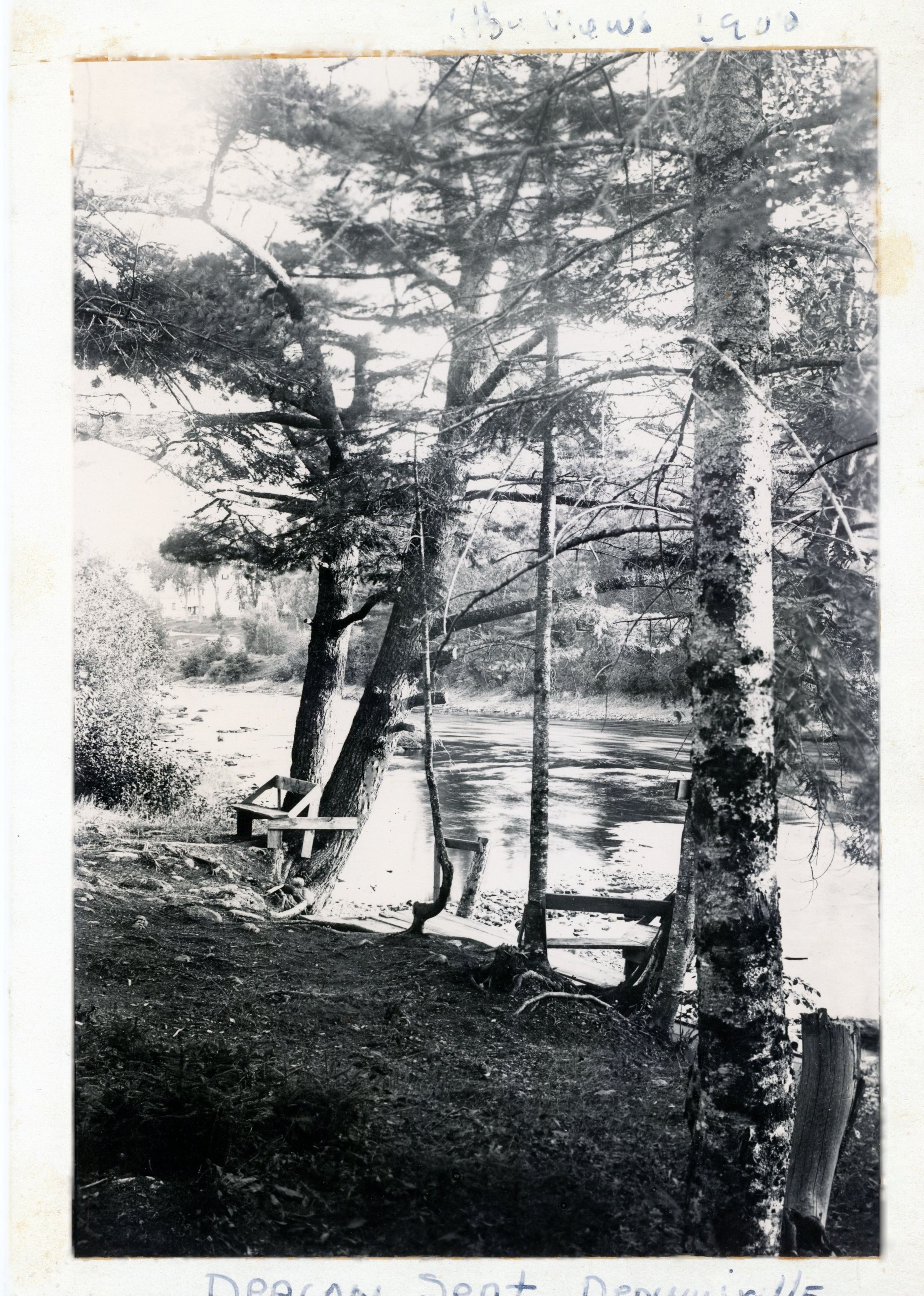 This view of Dennysville, Maine shows the Meeting House and other structures from the west side of the Dennys River with John P. Sheahan's house in the foreground, in this photograph by John Parris Sheahan, c. 1890. HIs portrait was taken after he returned from the Civil War and established a medical and dental practice in an office in Machias and from his home in Edmunds.Photograph Details