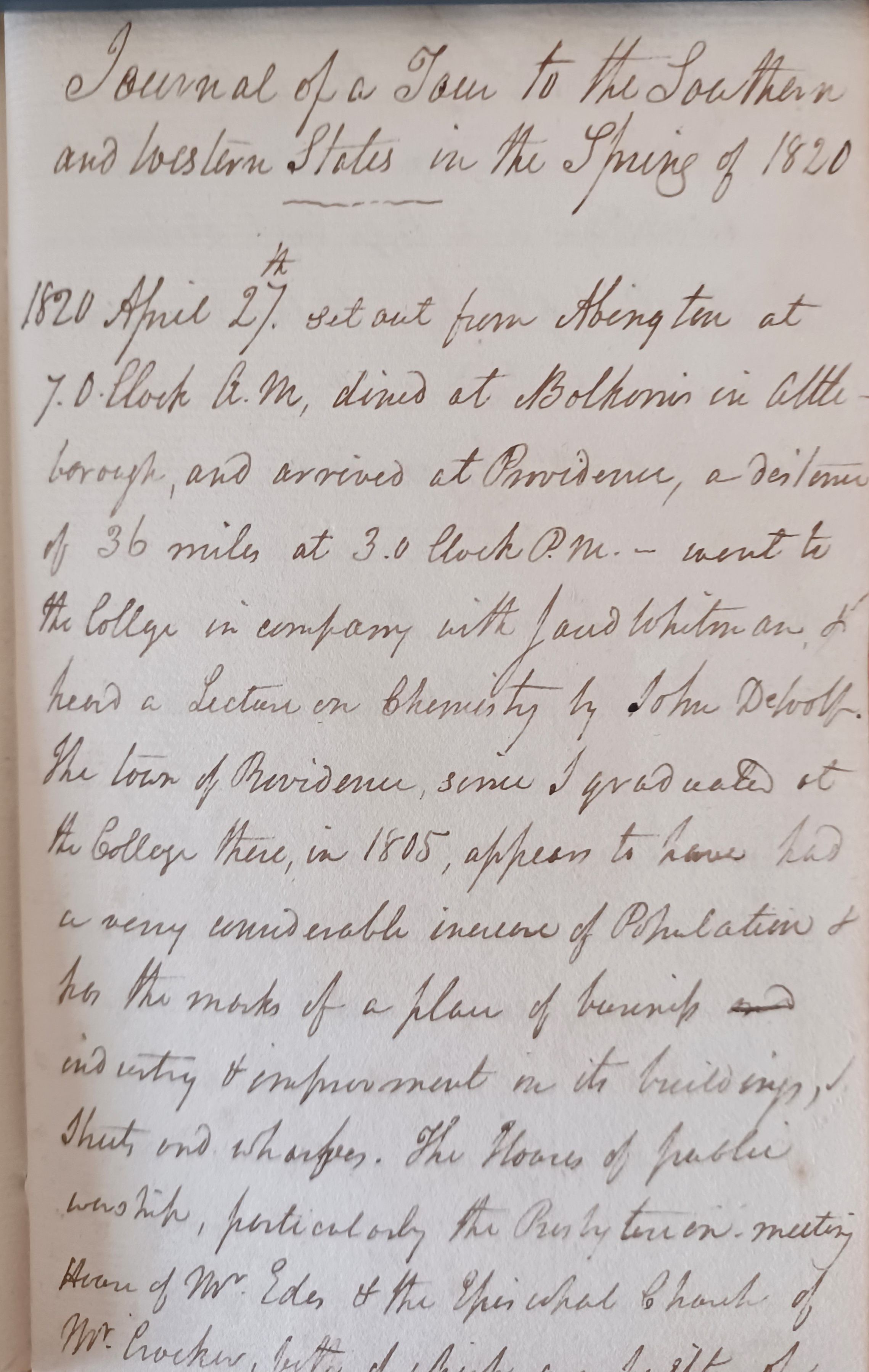 Journal of a Tour to the Southern and Western States in the Spring of 1820Scope and Content