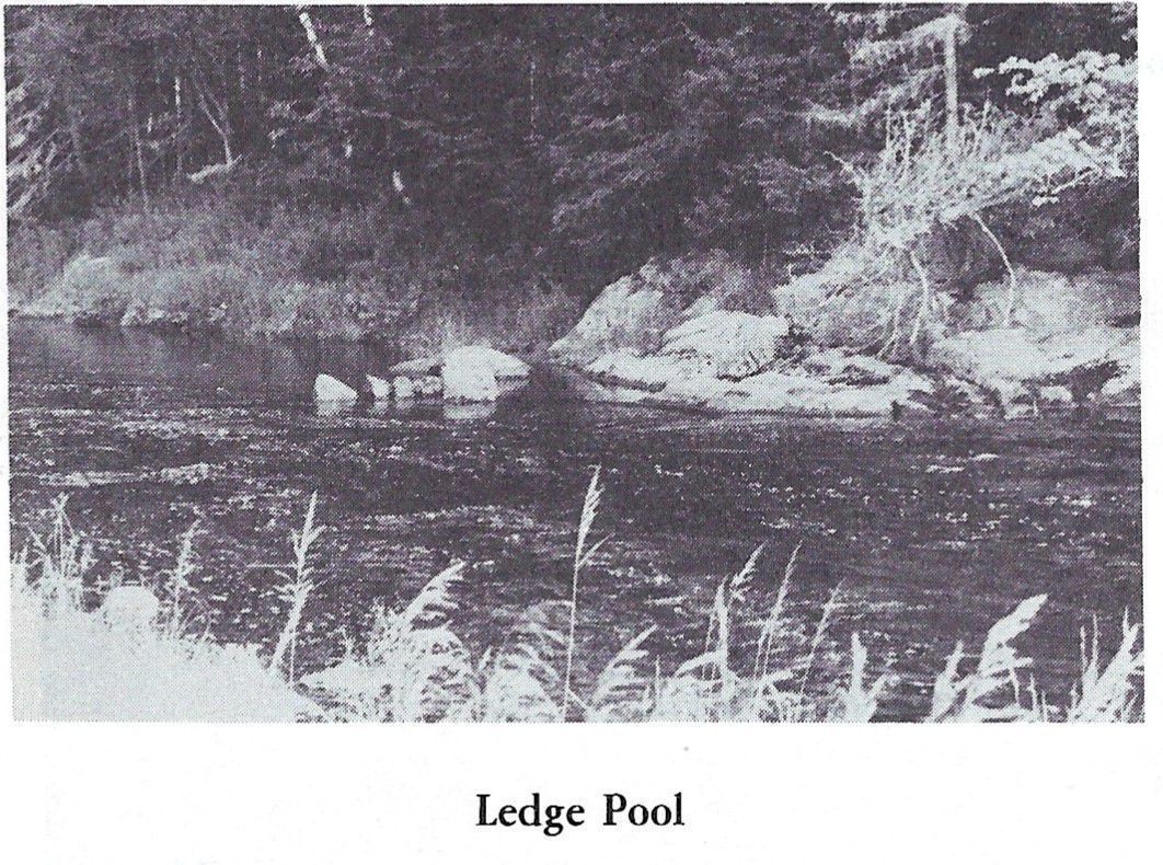 The Ledge Pool on the Dennys River, and map, reproduced from "Salmon on the Dennys 1786-1988" by Ed Bartlett and Ray Robinson.Context