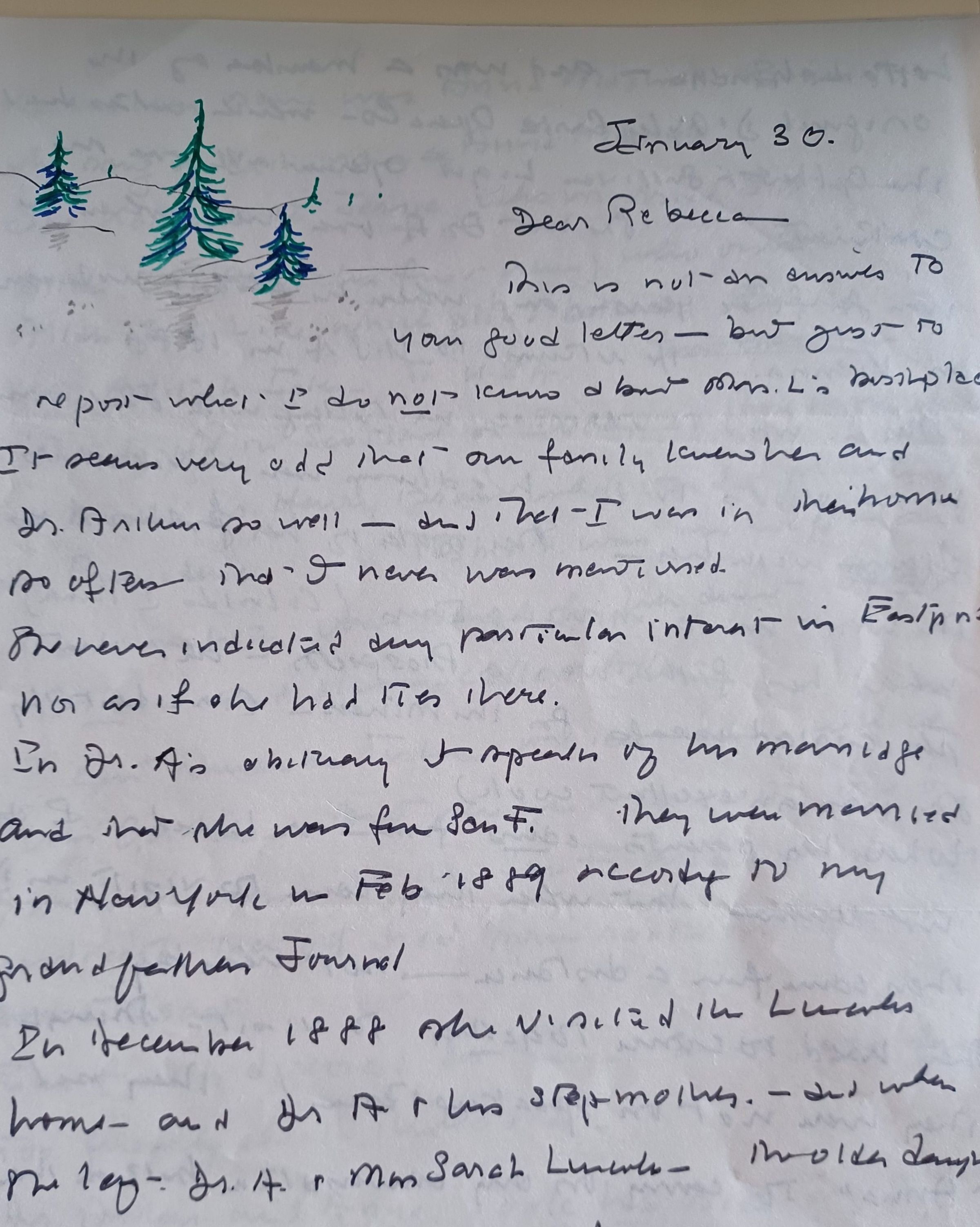 Three-page letter from unknown writer (the letter is signed "R") with information about the family and life of Anna Lincoln, dated January 30 with no year stated.Collection