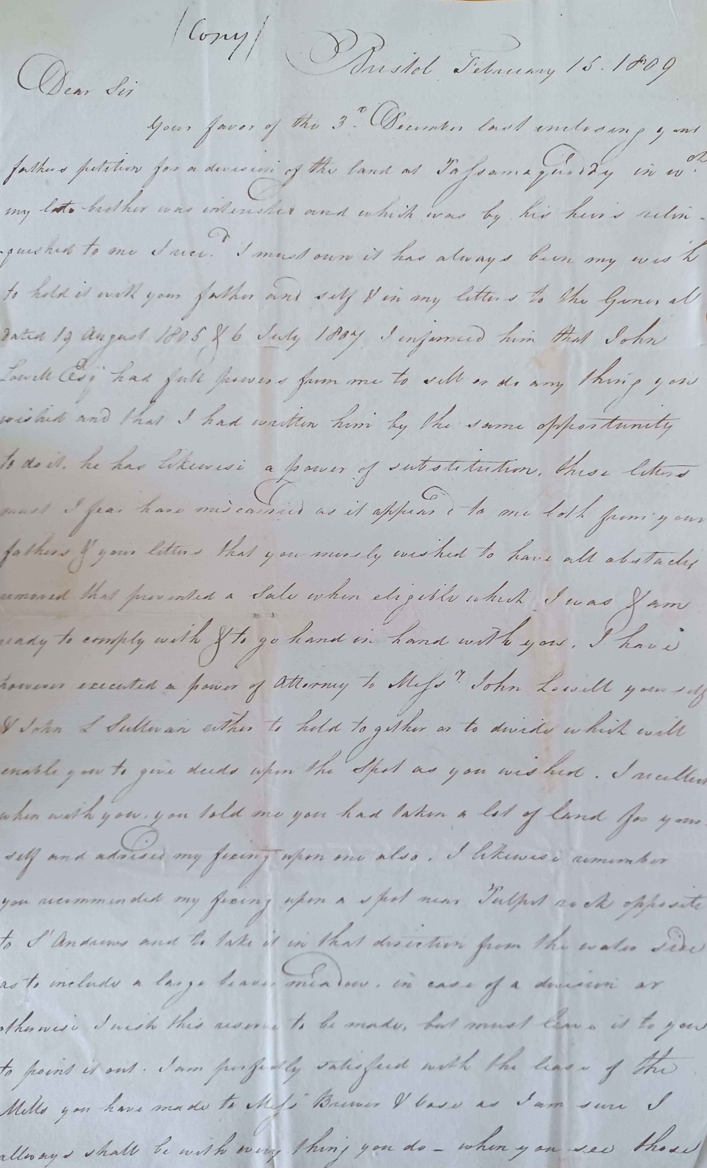 Letters from James Russell to Theodore Lincoln, dealing mostly with land and legal issues.Collection