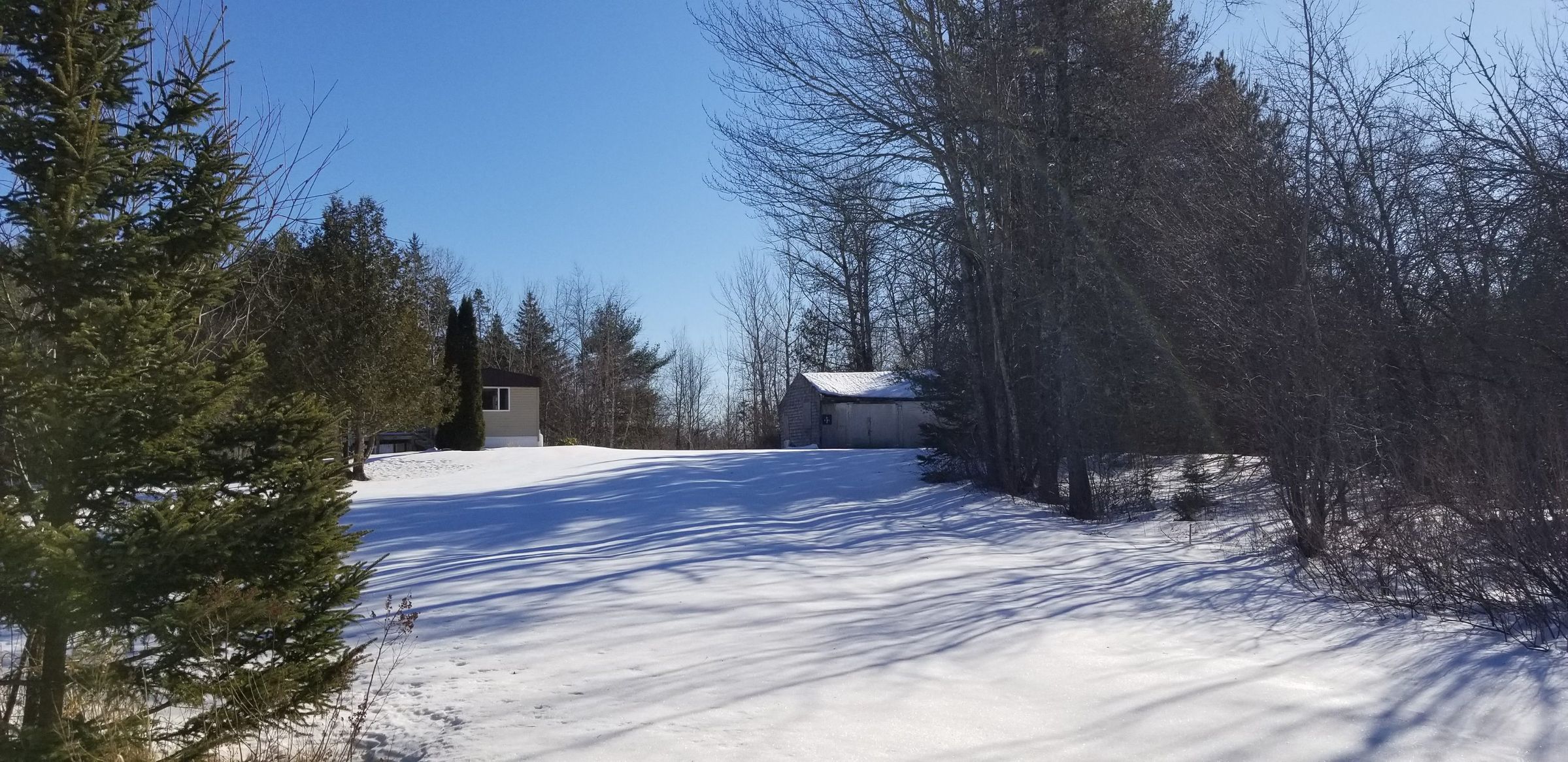 Levi Merchant's house trailer and garage, on King Street, Dennysville, Maine, from which he ran a scrap metal business in the late twentieth and early twenty-first centuries.Context