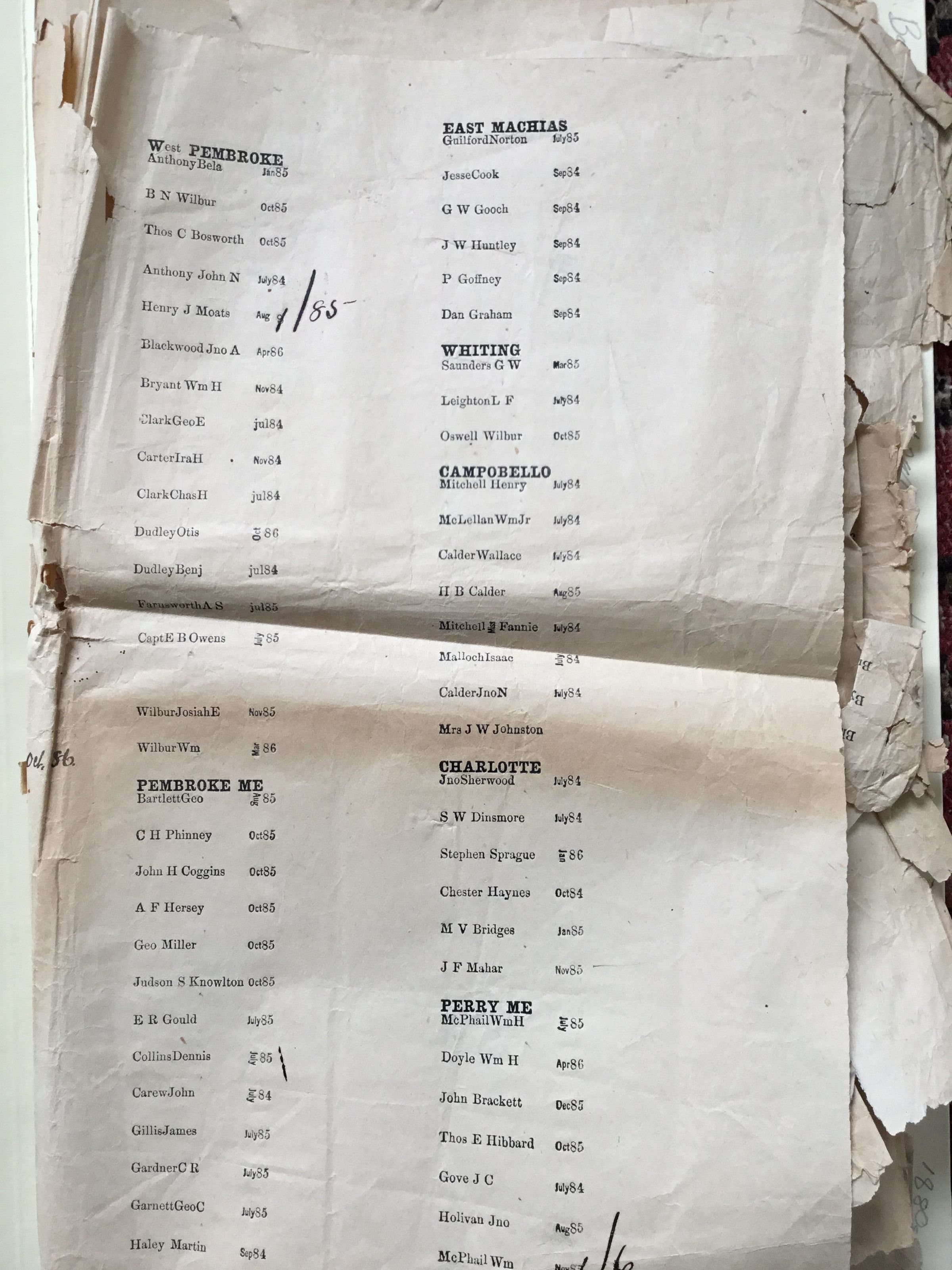 List of names sorted by Washington County town, also including Campobello. The purpose of the list is unknown.Collection