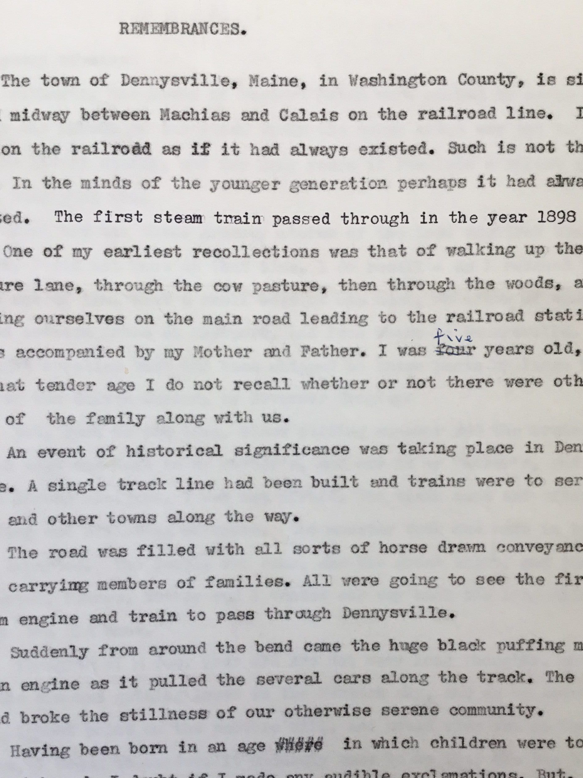 3) Remembrance of first train to arrive in Dennysville in 1898 (author unknown)