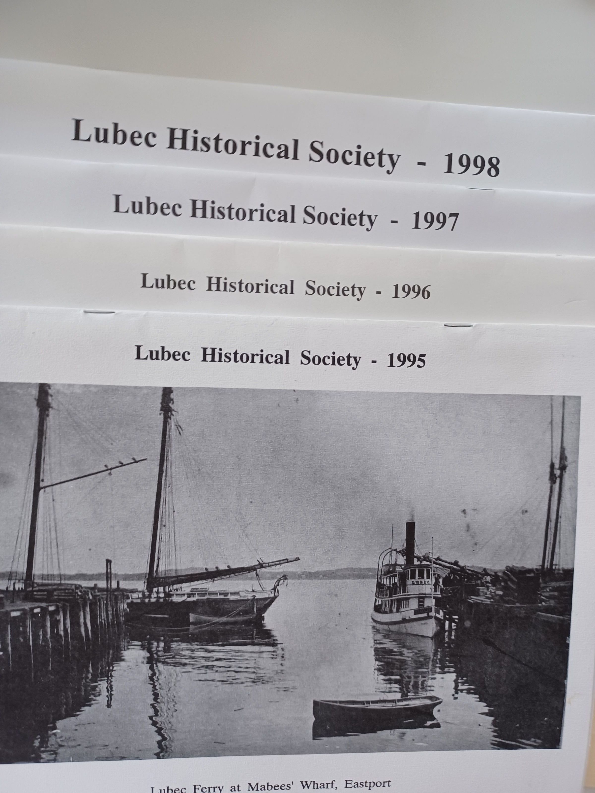 Four calendars from the Lubec, Maine HIstorical Society for the years 1995-1998. In addition to a photo for each month, the calendars include several preliminary pages with additional photos. All photos are reproduced in black and white.Context