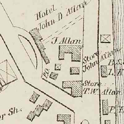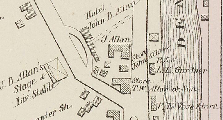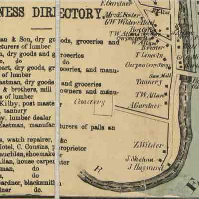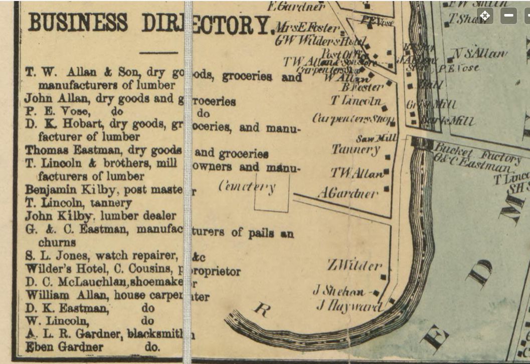 Photographs and maps place Lyman K. Gardner's blacksmith shop on the bank of the Dennys River where his father Ebenezer Gardner's shop stood.Context
