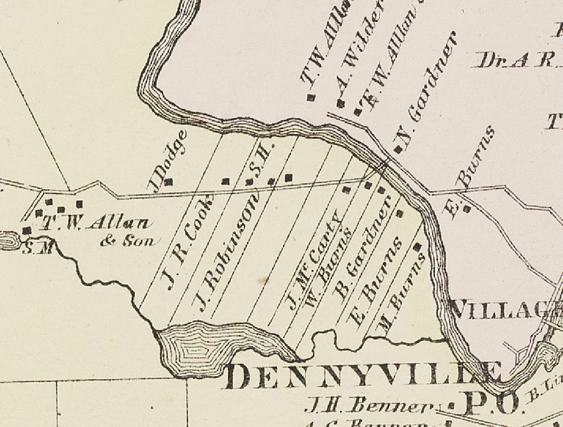 This small white lumbering-era house was the home of Frank and Millie Marshall in the mid-20th century. Frank "Bun" Marshall lived near Robinson Cottages and guided parties of hunters and fishermen on the Dennys River for years. He was the caretaker of "Red" Anderson's camp on the Narrows, where he loved to fish. Ray Robinson recalled, "For many years Bunny had been afflicted with arthritis, and his hands were terribly deformed, and he was barely able to grasp the rod. It must have been painful to hold the rod with those gnarled fingers. Bunny made several false casts, and finally dropped the fly on the water, but this side of the salmon. The fly wasn't riding right, so, it was suggested by onlookers that it needed some dry fly oil. After this chore was taken care of. Bunny made several more false casts and dropped the fly lightly on the water. The water exploded and a beautiful, bright salmon jumped into the air. The salmon raced around the pool, jumped six or seven times. and proceeded to give a spectacular battle. With a couple of boys supporting Bunny, and plenty of advice from the onlookers, the salmon grudgingly gave ground. After a ten-minute battle Bun brought the salmon in close and the fish was gaffed. It was a beautiful 12 lb. silver-sided salmon with sea lice still attached. The cheering that erupted from the crowd was deafening. . . . Bunny raised his head and looked at the boys and said, 'Boys, this is the best day I have had for a long time and I thank you.' Not bad for an old gent of seventy-nine."