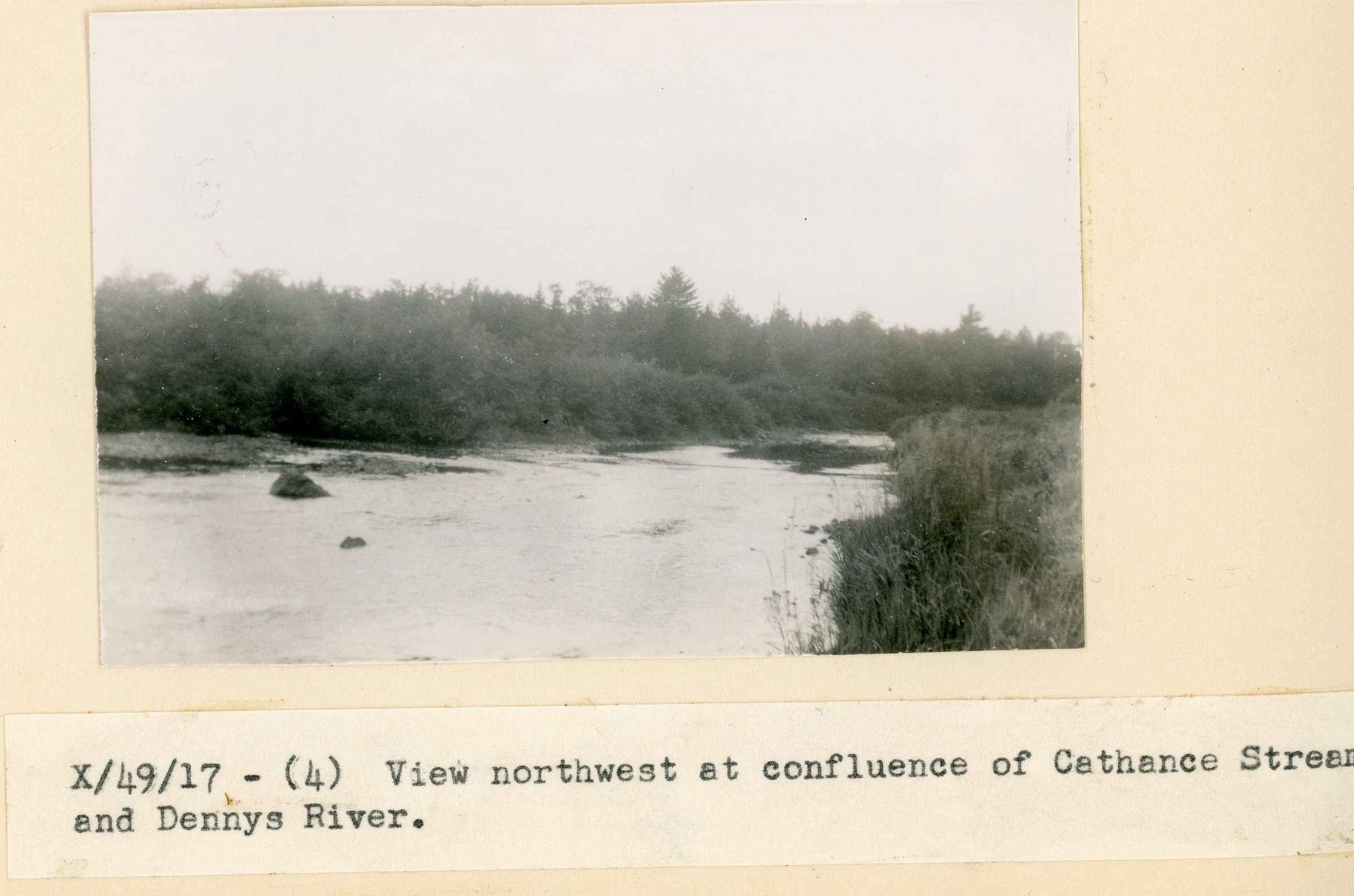 Several views of the mouth of the Cathance Stream on the Dennys River, location of a seasonal campsite of the Passamaquoddy tribe for salmon fishing, and investigated by archeologist Theodore Stoddard during the Northeast Archeological Survey in 1949.Collection