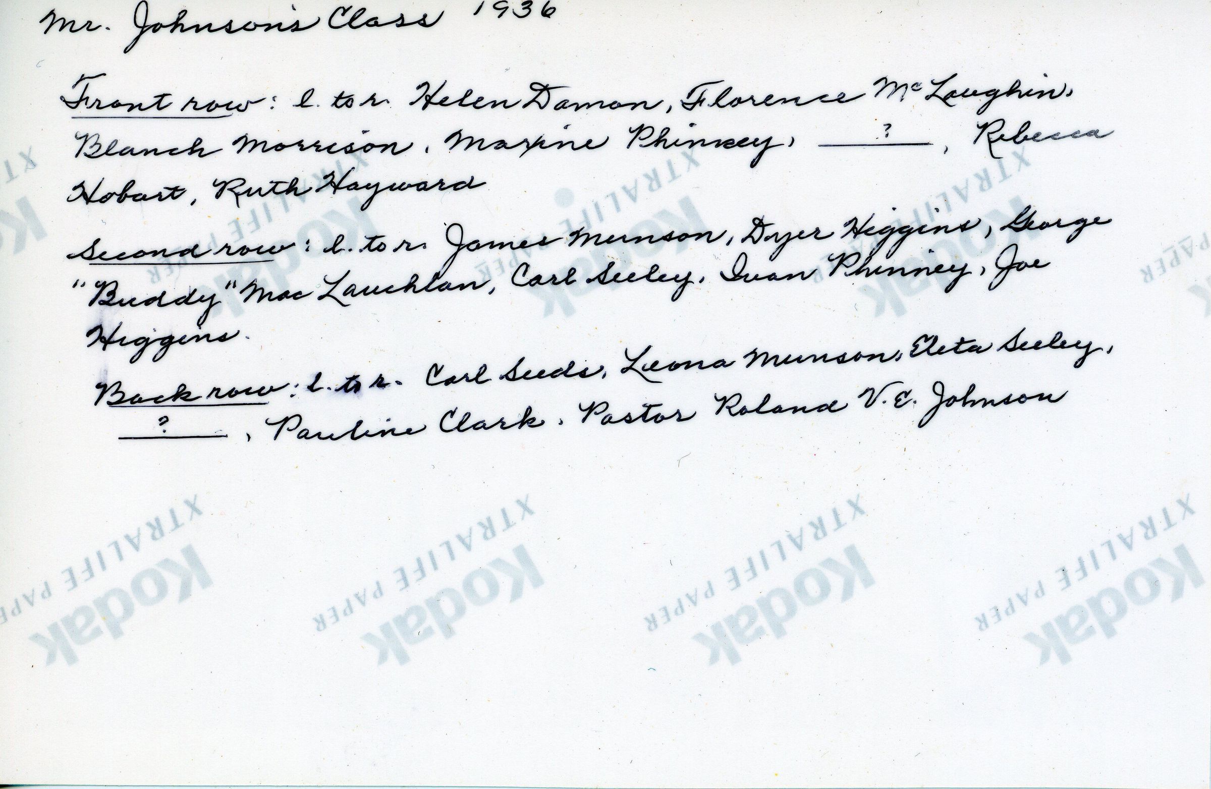Mr. Johnson's Class 1936, Dennysville, Maine