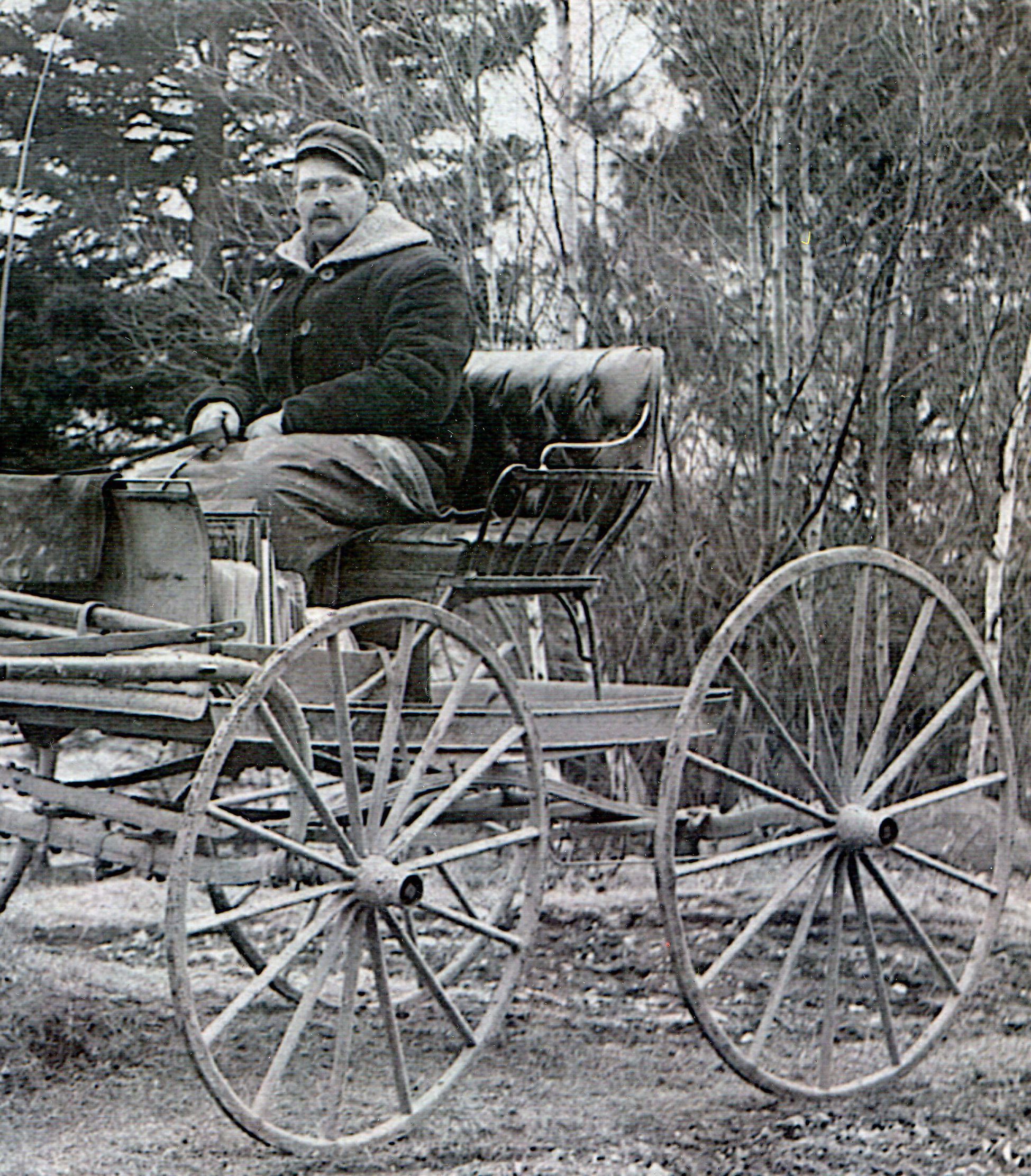 Nat Smith with his horse and wagon, was a Rural Mail carrier for many years around the turn of the twentieth century. He lived near the Hobart Stream in Edmunds, in house originally built by Isaac Hobart Jr., across the bridge from the house built by his father, Isaac Sr.Context