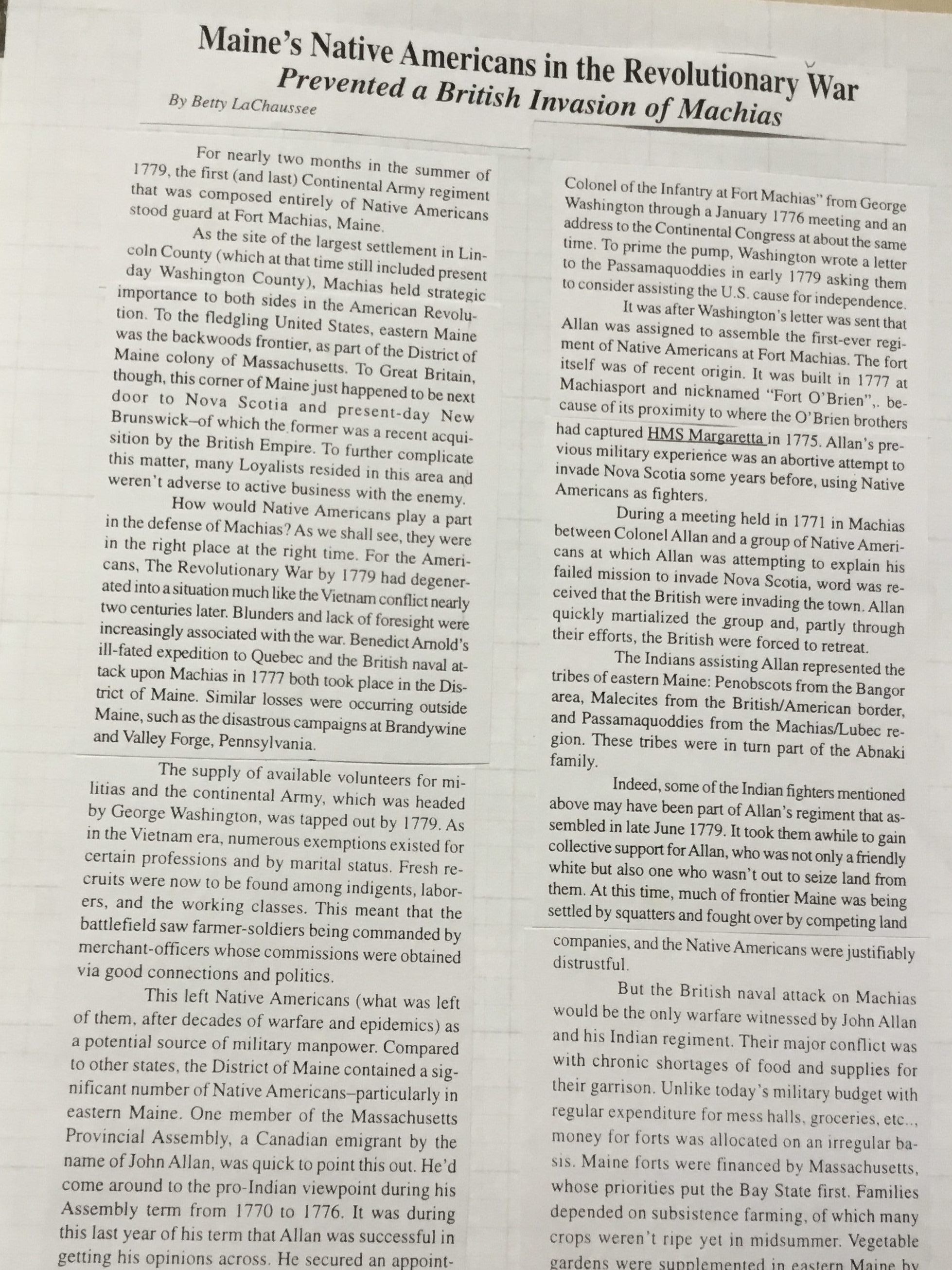 Newspaper clippings and photocopies about events, history and news in Washington County, Maine and beyond.Collection