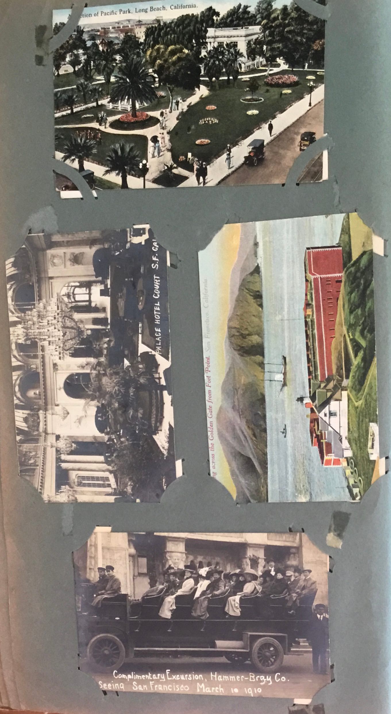Album of postcards from across the United States, mostly unused. Places represented in the album include California, Colorado, Missouri, Illinois, New York, Washington, D.C., Massachusetts, Florida, Maine, Ottowa, New Jersey, and other locations in the U.S. and Canada.Collection