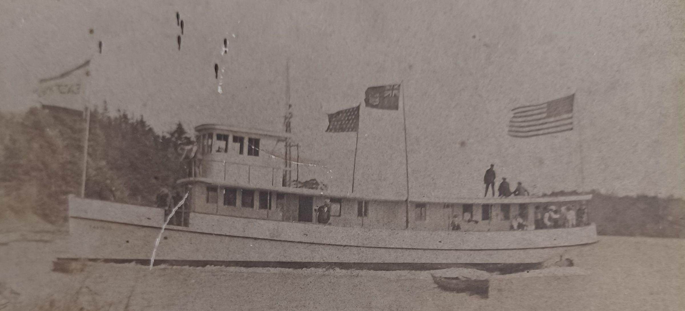 Photos taken by members of the Pushee family of Dennysville, Maine, showing ships, family members and their pets, and views of Cobscook Bay.