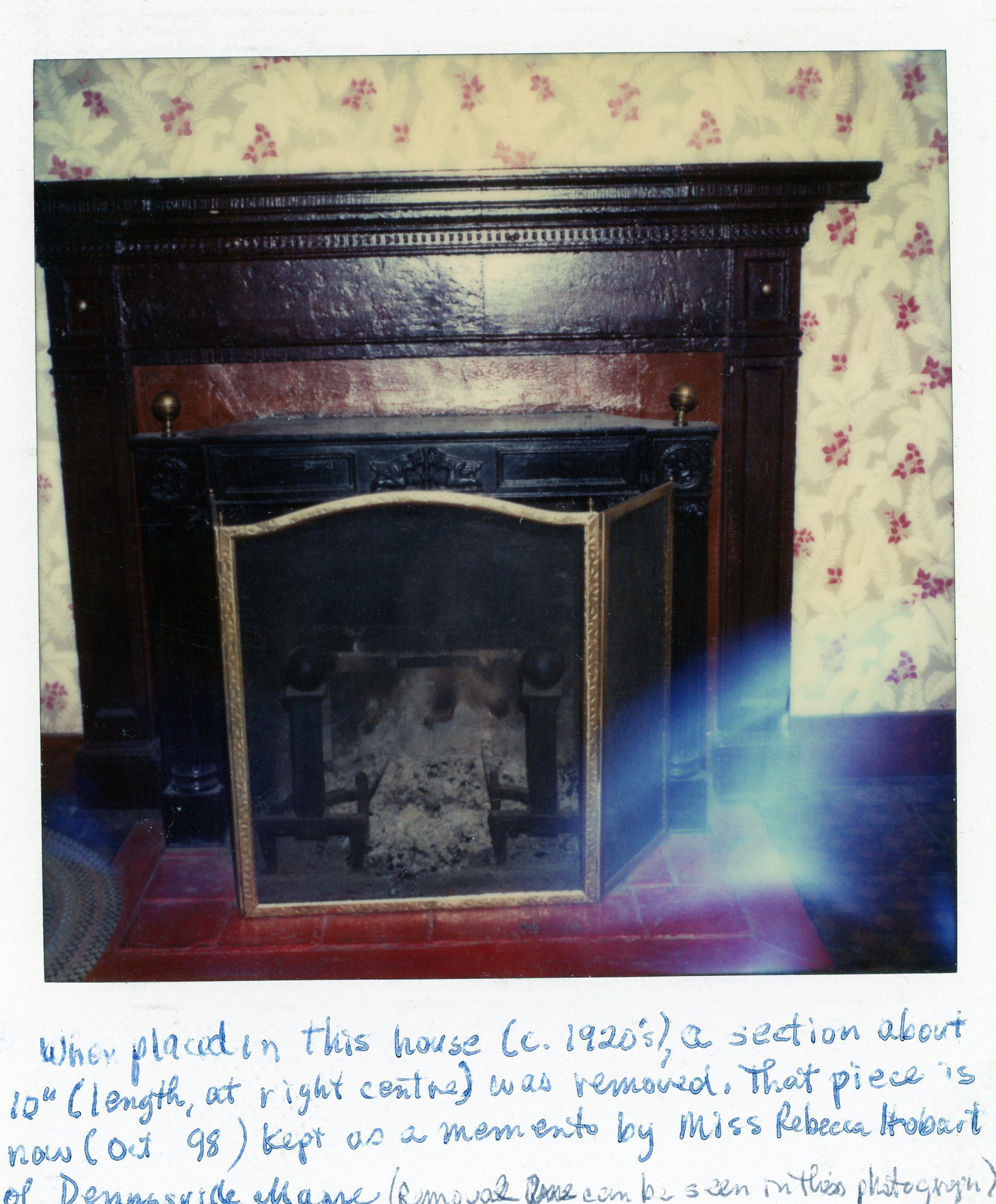 Richard Hobart, Sr. House Site, Little Falls, Edmunds, Maine. An interior photograph, taken in 1981, shows the mantel taken from the earlier Isaac Hobart House and adapted for reuse in this 1926 house.Context
