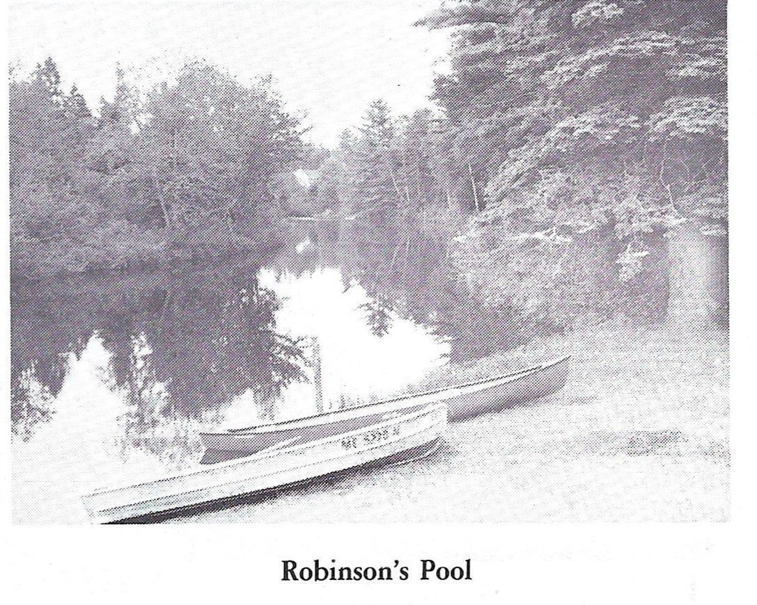 Robinson's Pool was named for the adjacent land which was owned by the Robinson family for many years. It is the location of Robinson's Cottages, a multi-generational family run business offering accommodation and a Maine Guide service.Collection