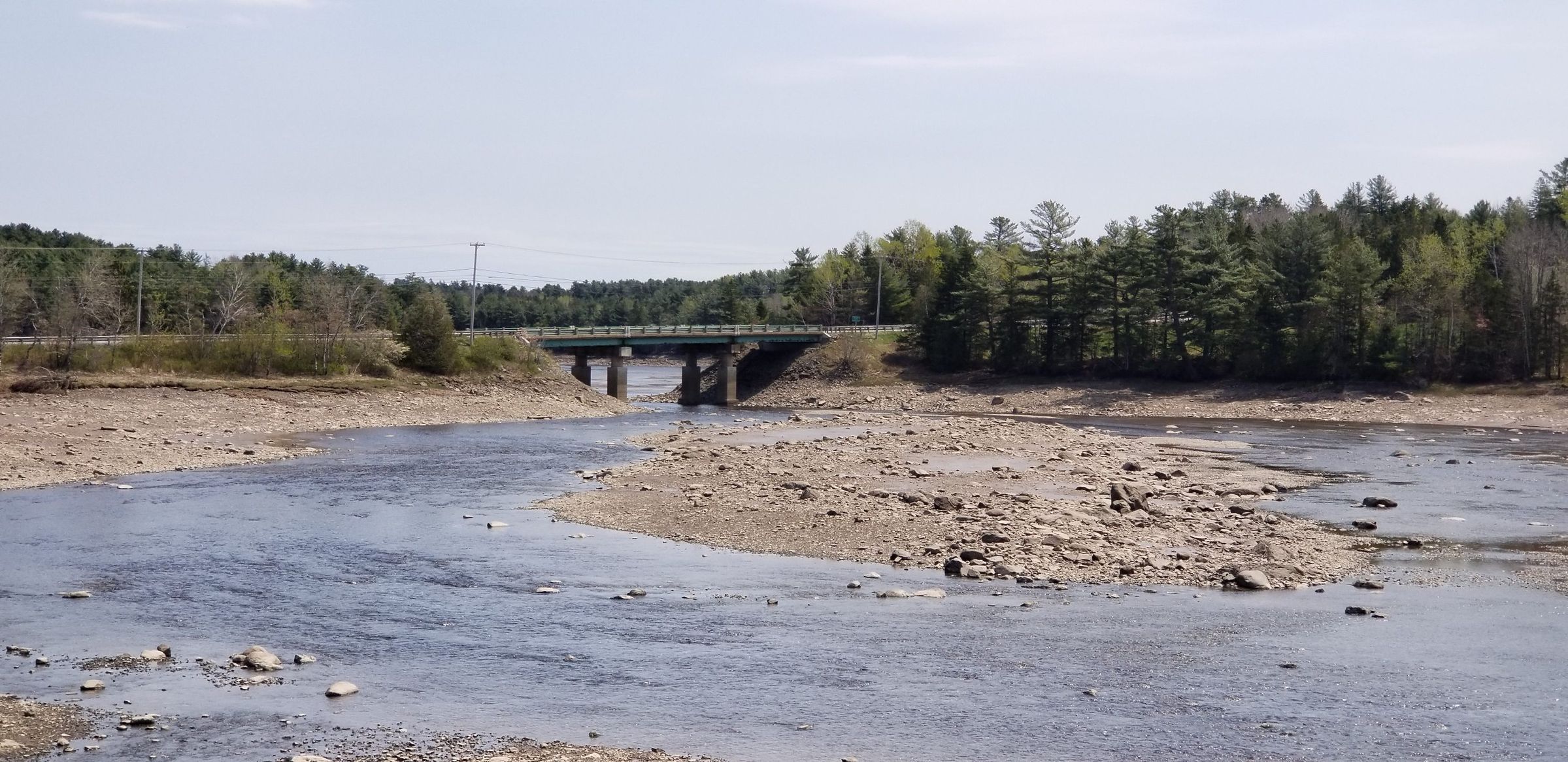 The U.S. Route 1 bridge over the Dennys River was built in 1955 to bypass the village of Dennysville. In several of these views it is viewed from the Dennys River at low tide, with Dennysville is on the left, and Edmunds on the right side of the picture.Context