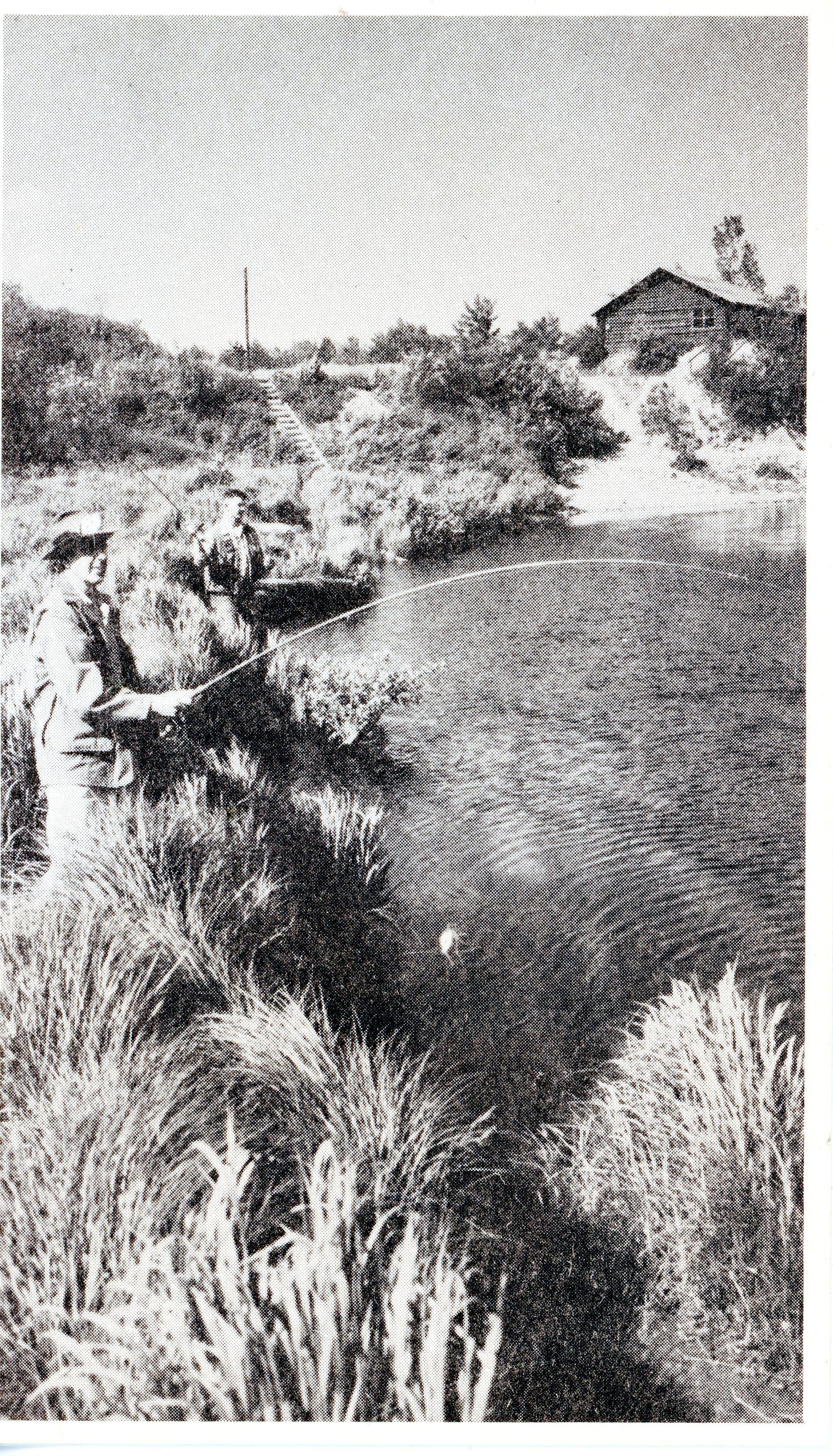 The images depict Ray Higgins displaying a freshly caught salmon, and fishermen Don Phinney and Dennis Downes on the Dennys River, with the Club House on Sol's Point in the background.Collection
