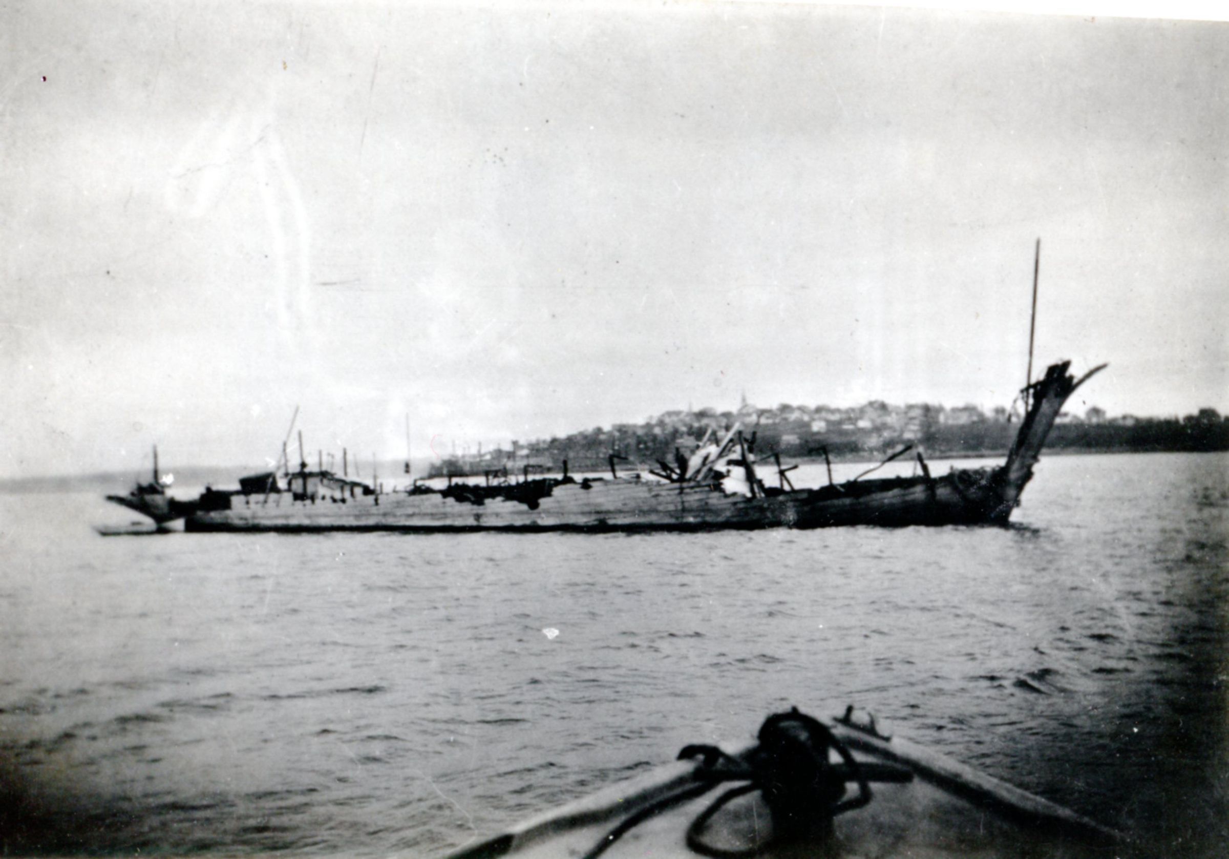 The schooner Dornfontein was moored in Johnson's Bay, Lubec, after being looted and burned by a roving German submarine in 1918. Lyman Pushee found that she was salvageable and towed her to his in Dennysville shipyard for repairs.Context