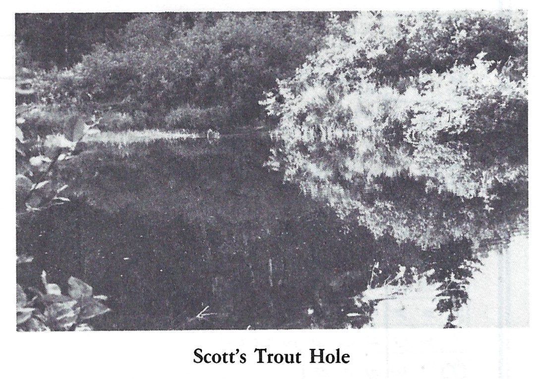 View of Scott's Trout Hole on the Dennys River, reproduced from "Salmon on the Dennys, 1786-1988" by Ed Bartlett and Ray Robinson.Context