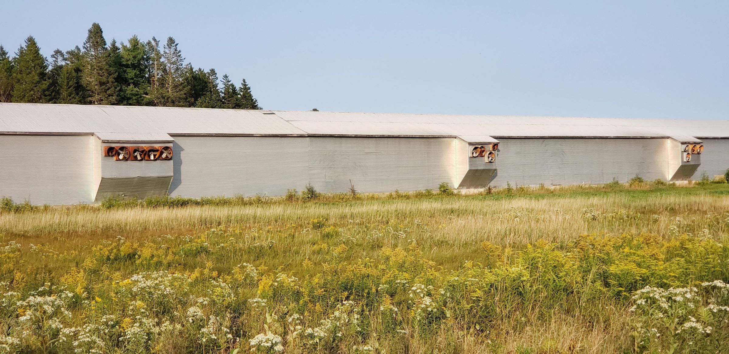 Two views of the long chicken barn built in the early 1970's for the egg business operated by Earl Seavey and family, beside thier house on The Lane in Dennysville, Maine.Context