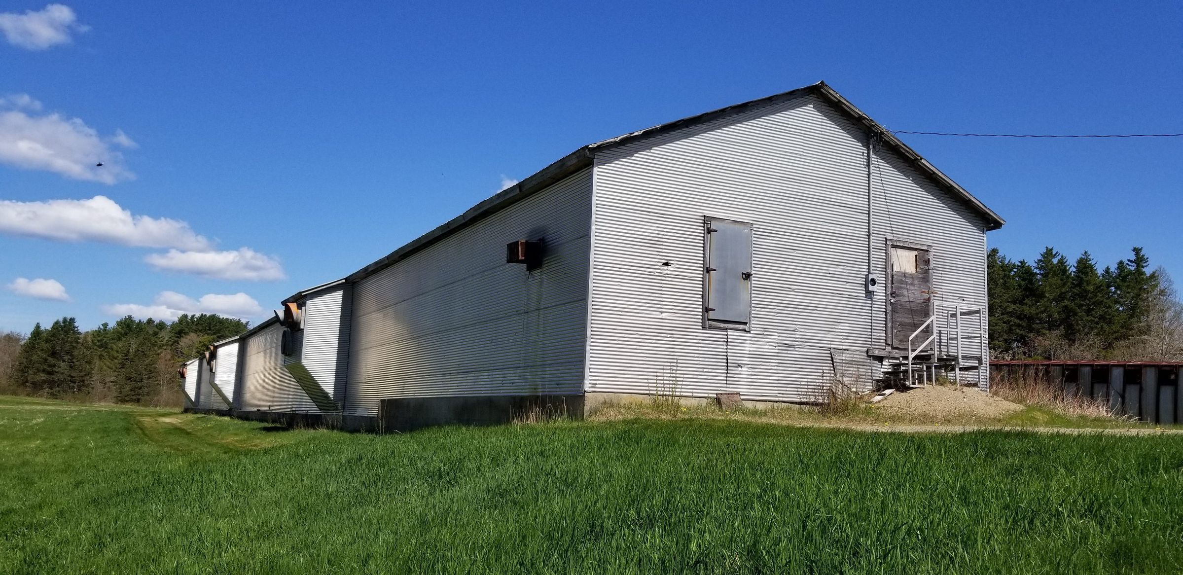 The chicken barn, or "hen pen," was built by Earl Seavey in the early 1970's to house 20,000 laying hens for the egg business, relying on the regular supply of feed arriving at the Dennysville railroad station. Since the discontinuation of the railroad, the building has been used for storage.