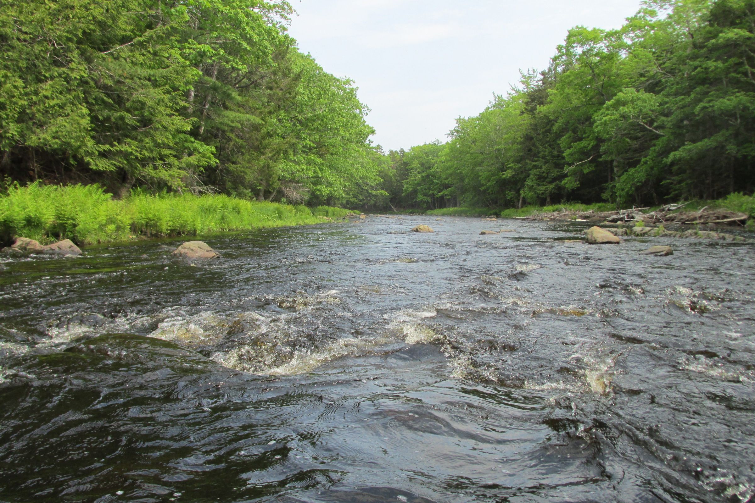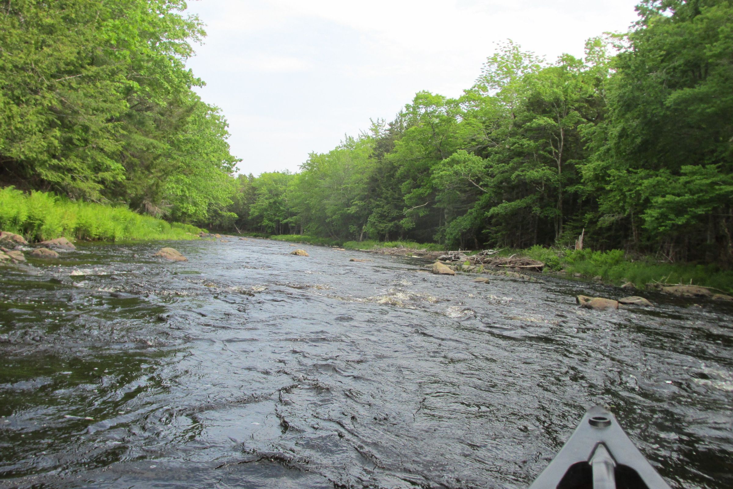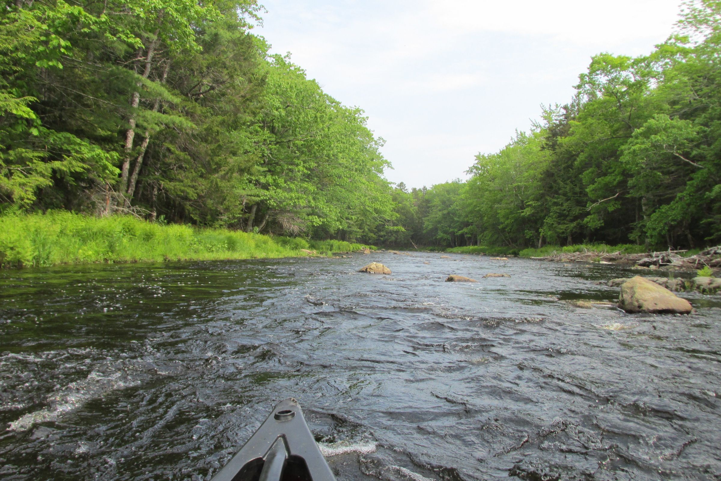 These storied Class I_II rapids rise below Curry Brook and continue for part of mile down the river. They are shadowed by an esker known as the "Whaleback" following along on the eastern side of the river.Collection