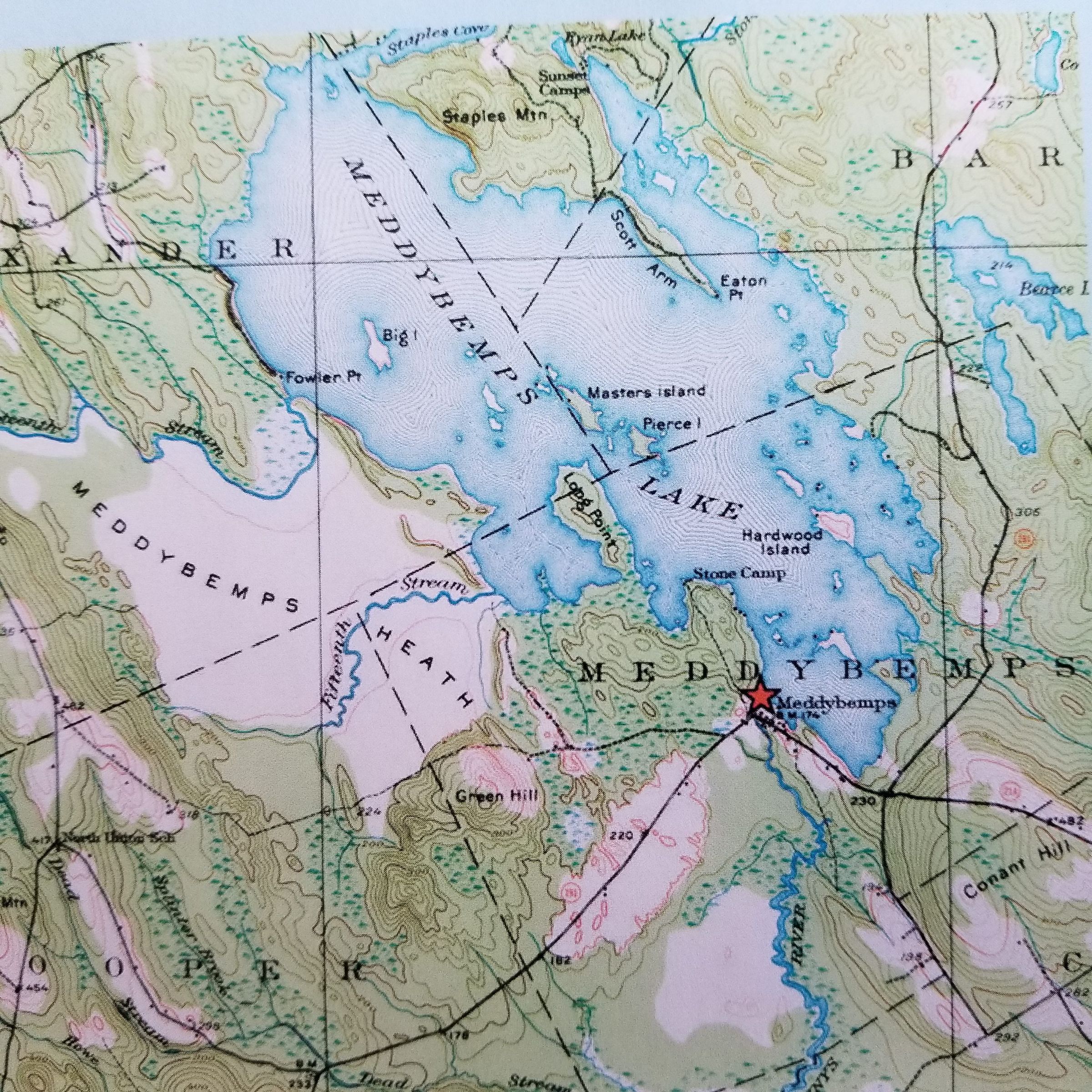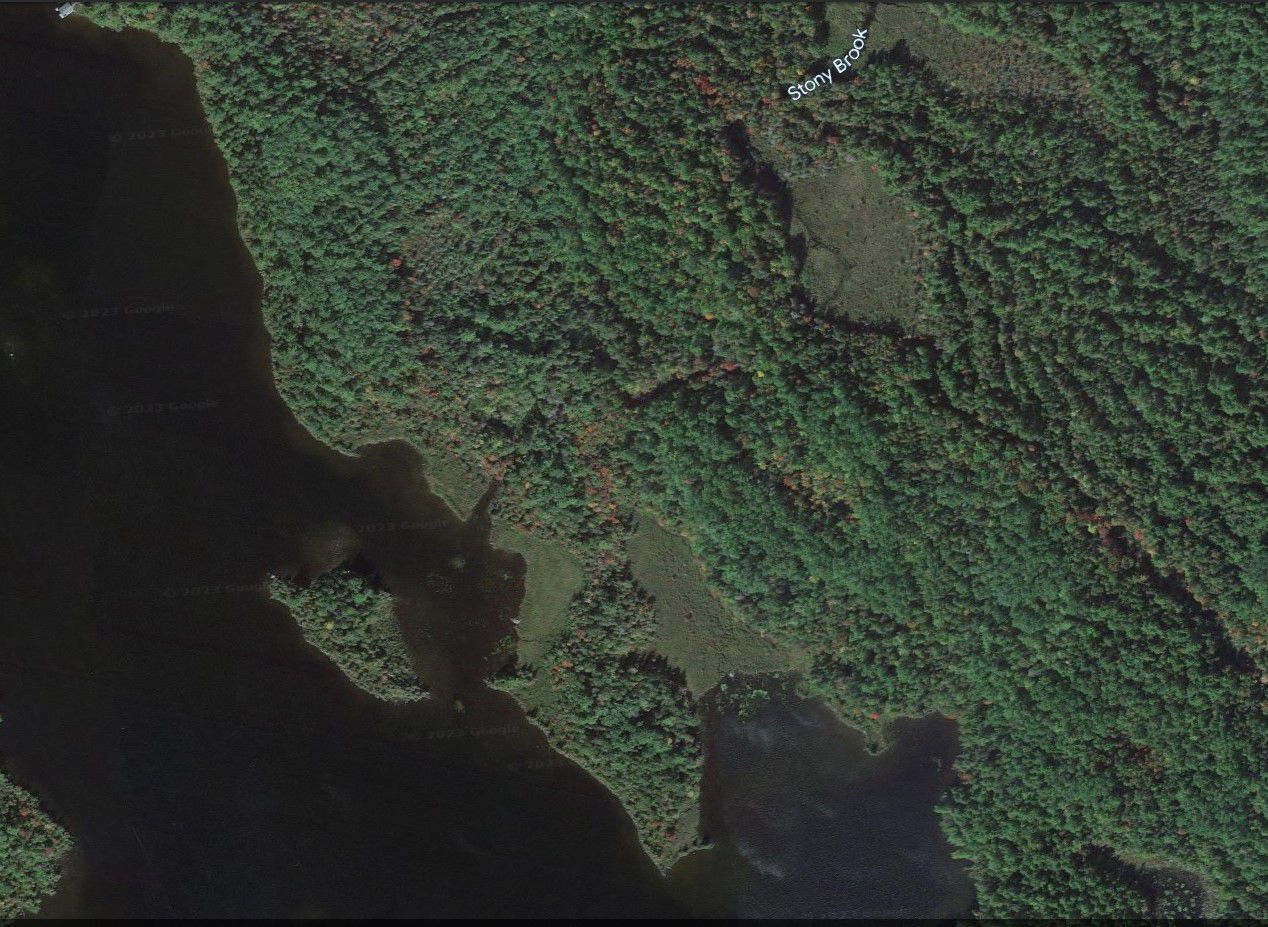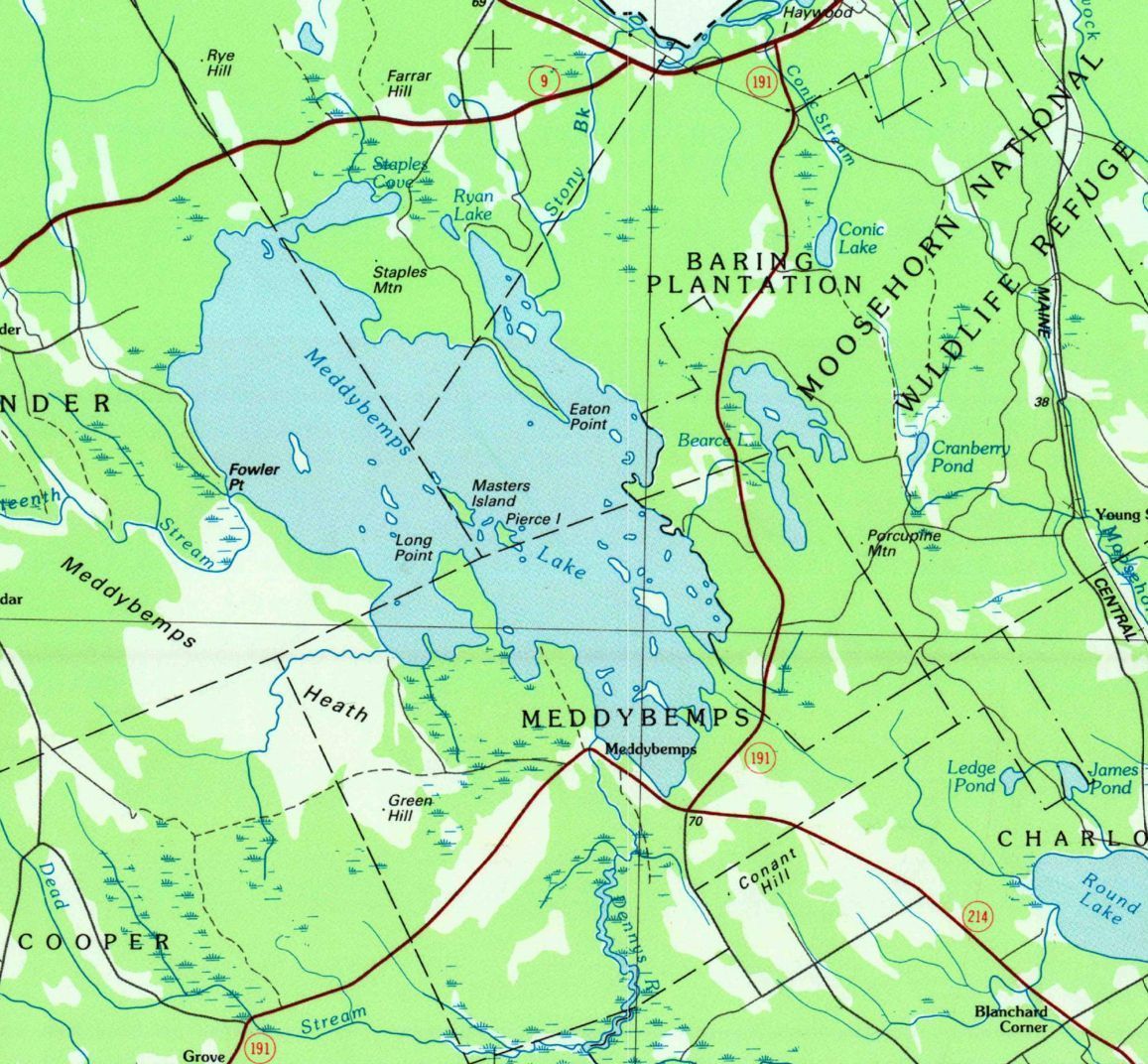 Stony Brook was the original outlet on Meddybemps Lake, above Eaton Point emptying into the St. Croix River. During the settlement of the area following the American Revolution, lumbermen from Dennysville built a berm across the mouth of Stony Brook, forcing the water to flow south through the Dennys River towards the mills in Dennysville and Edmunds.