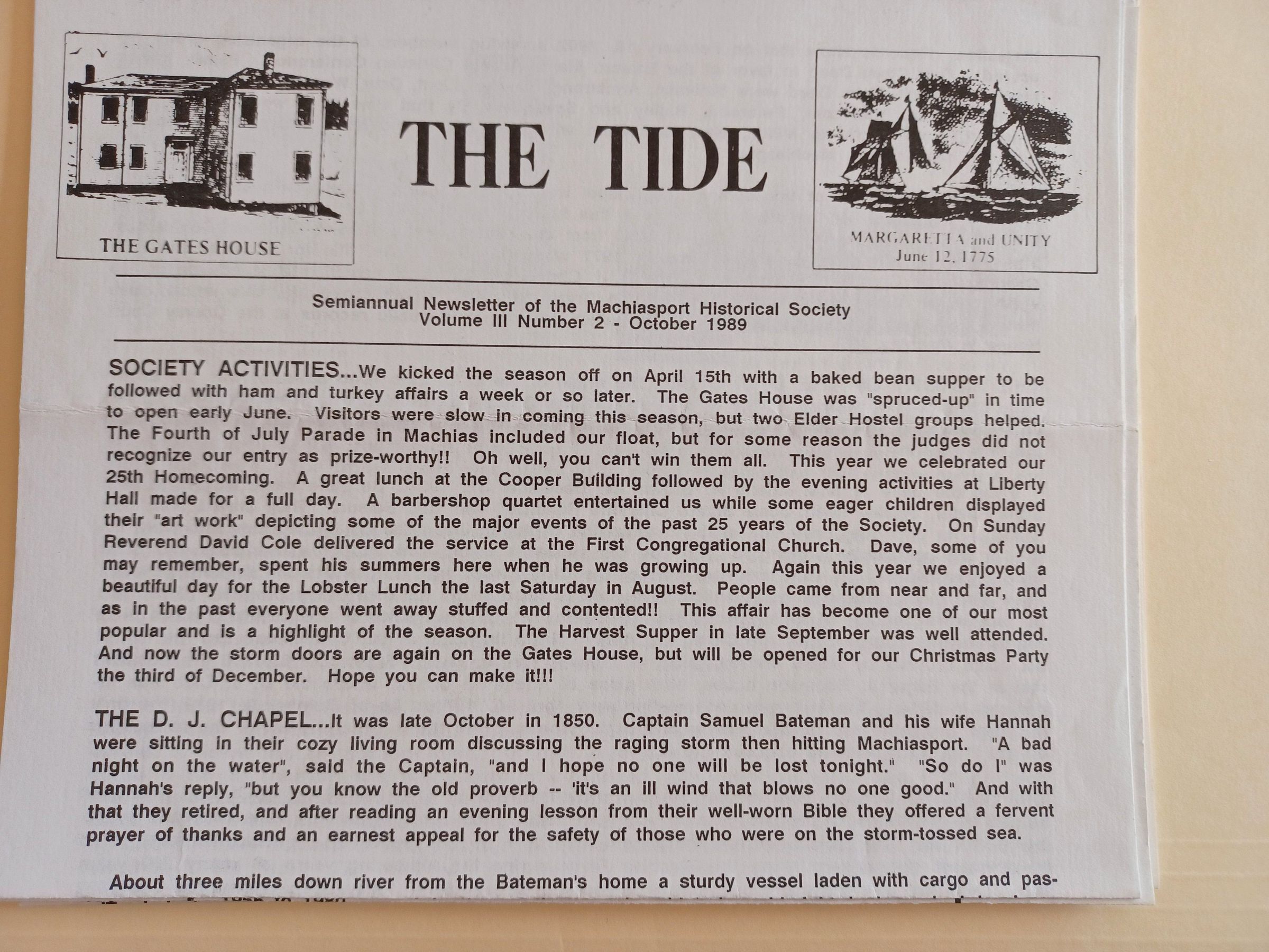 Newsletter of the Machiasport (Maine) Historical Society.