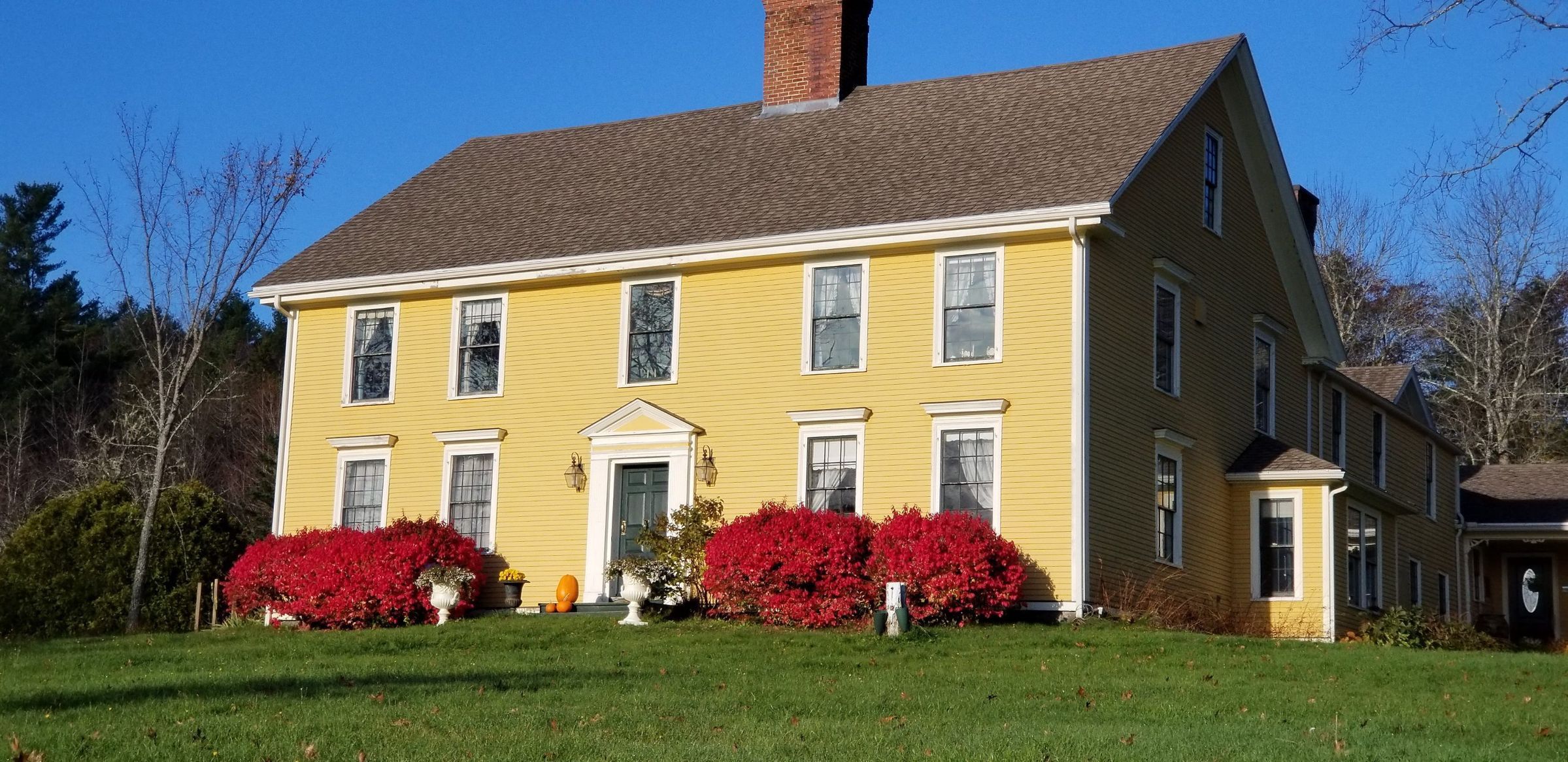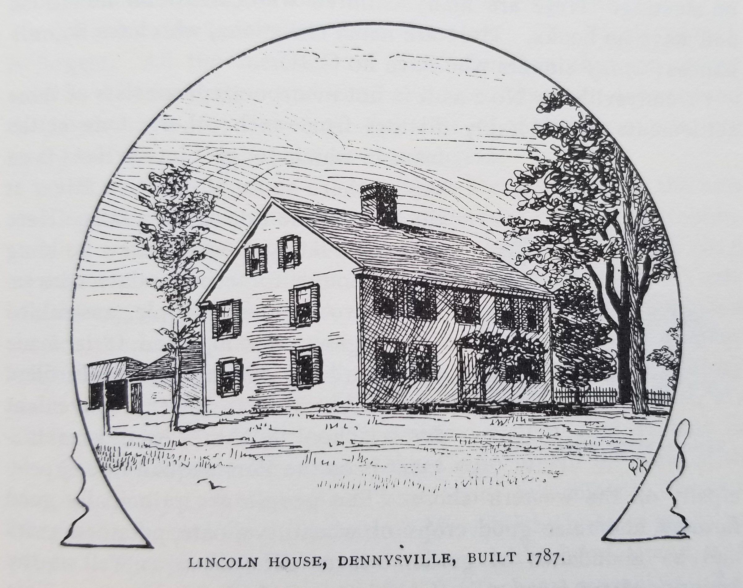Exterior view of the Dennysville's Lincoln House when it was owned and operated by Dorothy Casey as a bed and breakfast establishment for passing travelers. The old barn can be seen on the hill behind the house, before it was taken down and removed in 1970.