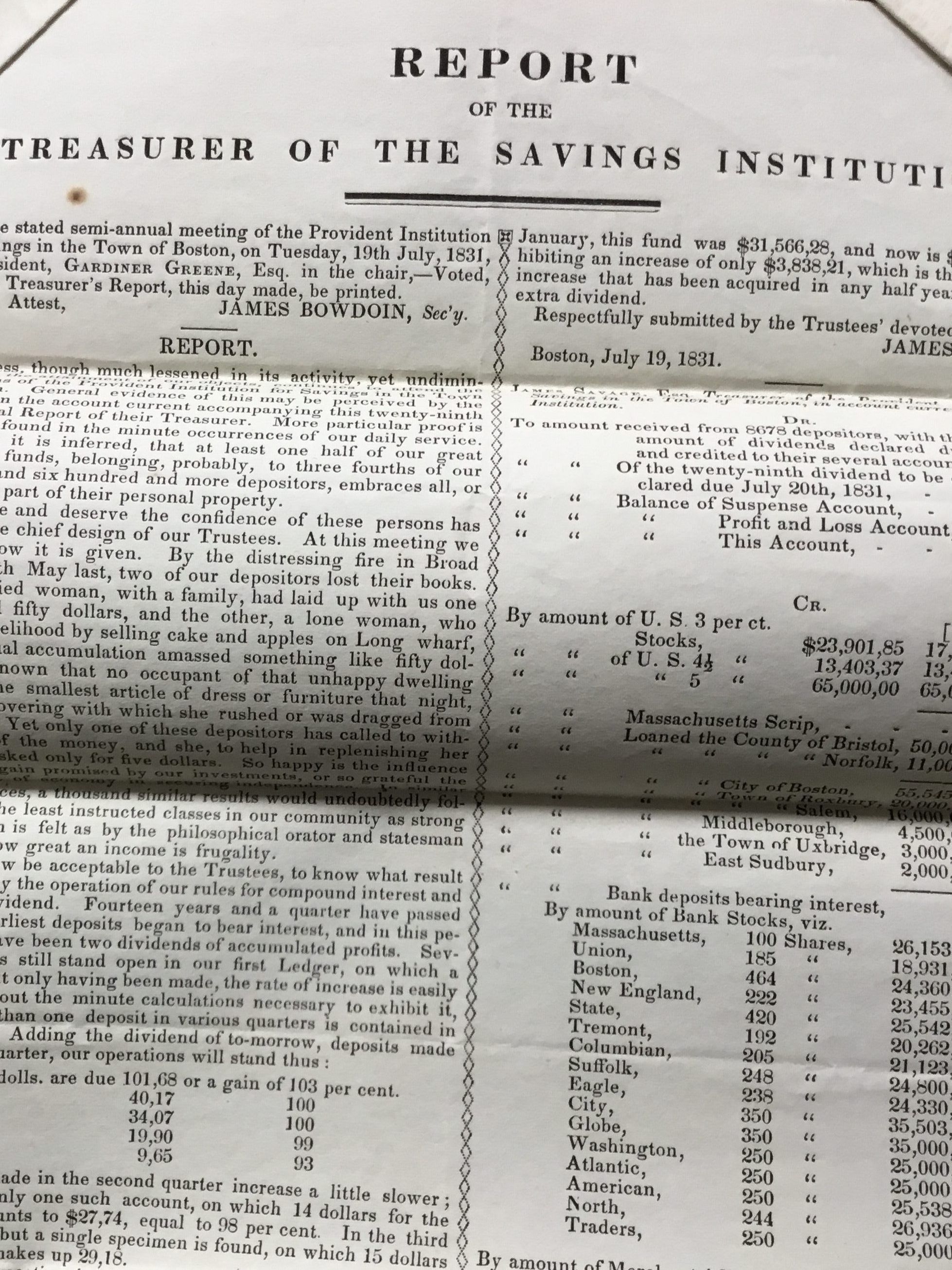 Treasurer's Reports for the Provident Bank for Savings, Boston, MassachusettsScope and Content