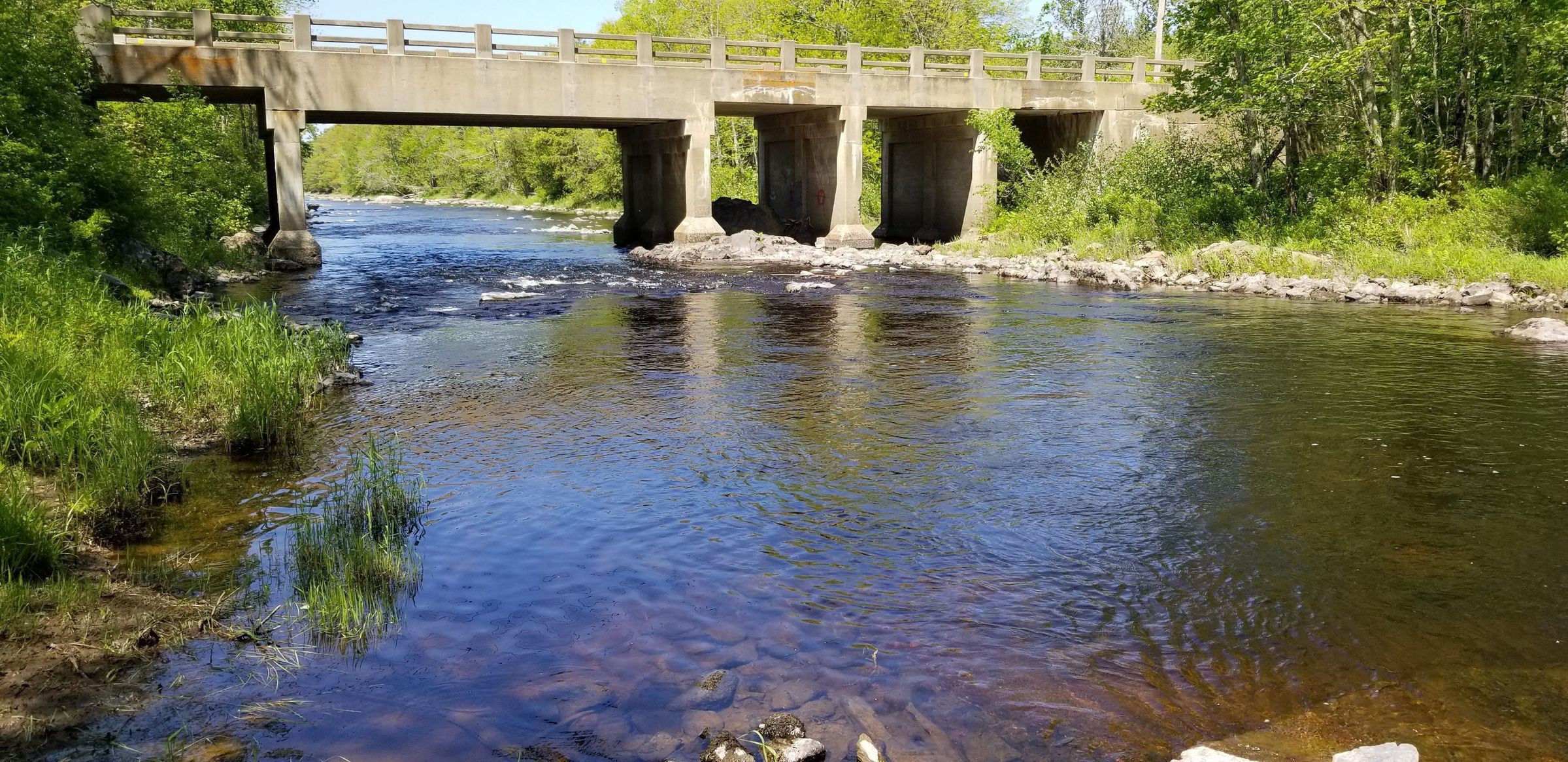 The Upper or upstream Bridge over the Dennys River, seen form the the Dennysville shore.