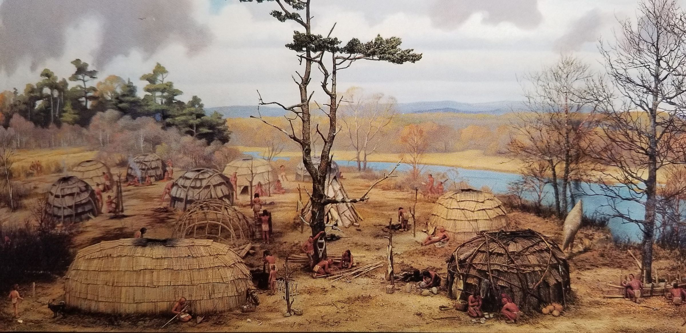Archaeology confirms that native Americans first camped at N’tolonapemk around 9000 years ago. As the glacier retreated, and the water level rose, the Dennys River cut a channel immediately south to become the outlet of the lake. The earliest occupants of the village began a pattern of subsistence strategies that were utilized by all of the people that were to follow. This included a seasonal emphasis exploiting the alewife spawning run, fishing for perch, sucker and eels, hunting for large mammals and the hunting or trapping of beaver, muskrat, woodchuck, as well as a variety of birds and turtles. They also collected a variety of plants as evidenced by the charred nutshells, seeds, and other recovered plant fragments.