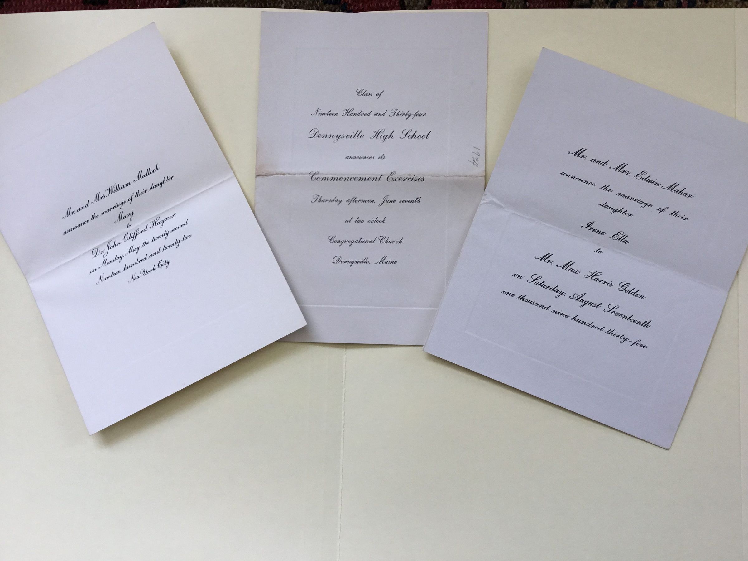 Three wedding announcements and four invitations to Dennysville High School graduation exercises.