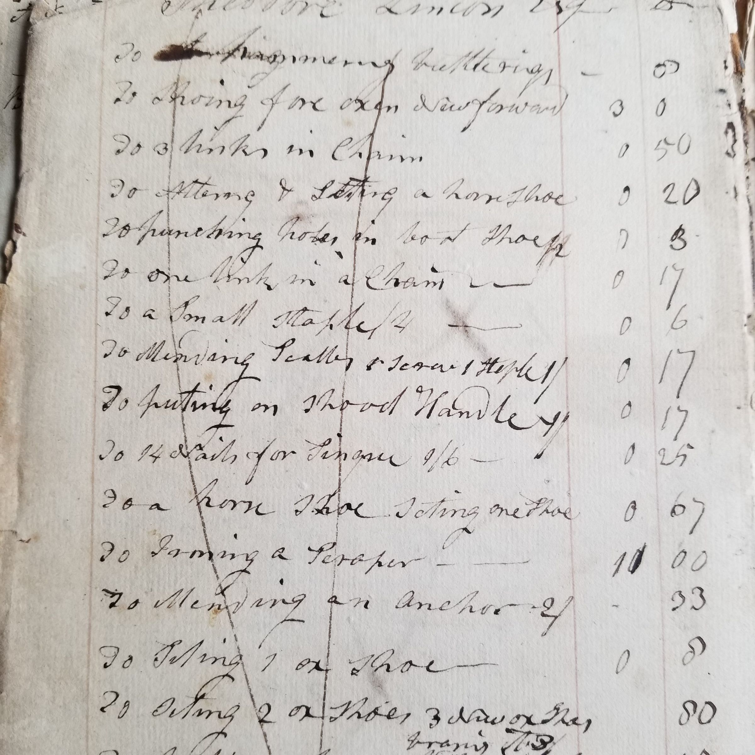 William Kilby, a member of the Lincoln family, began building his house in Dennysville in 1788, having lived briefly in Township No. 1. He was a blacksmith by trade, setting up his shop beside the Dennys River in 1795. His account books record the everyday needs of the people who settled this community until his death in 1829. In 1900, an article in the Eastport Sentinel recalled: "The Blacksmith Shop--the first one was built on the riverbank by Deacon William Kilby. He had quite a business in the way of shoeing oxen. In the icy season he shod the hoofs of cows when driven to the eddy for water. Old Dugald C. McLauchlin, the village shoemaker, was always on the lookout to perform a humane act. He kept a rope in readiness with a slip noose appliance to drag out the unfortunate cattle from the river when on the point of slipping under the ice."Archive Details