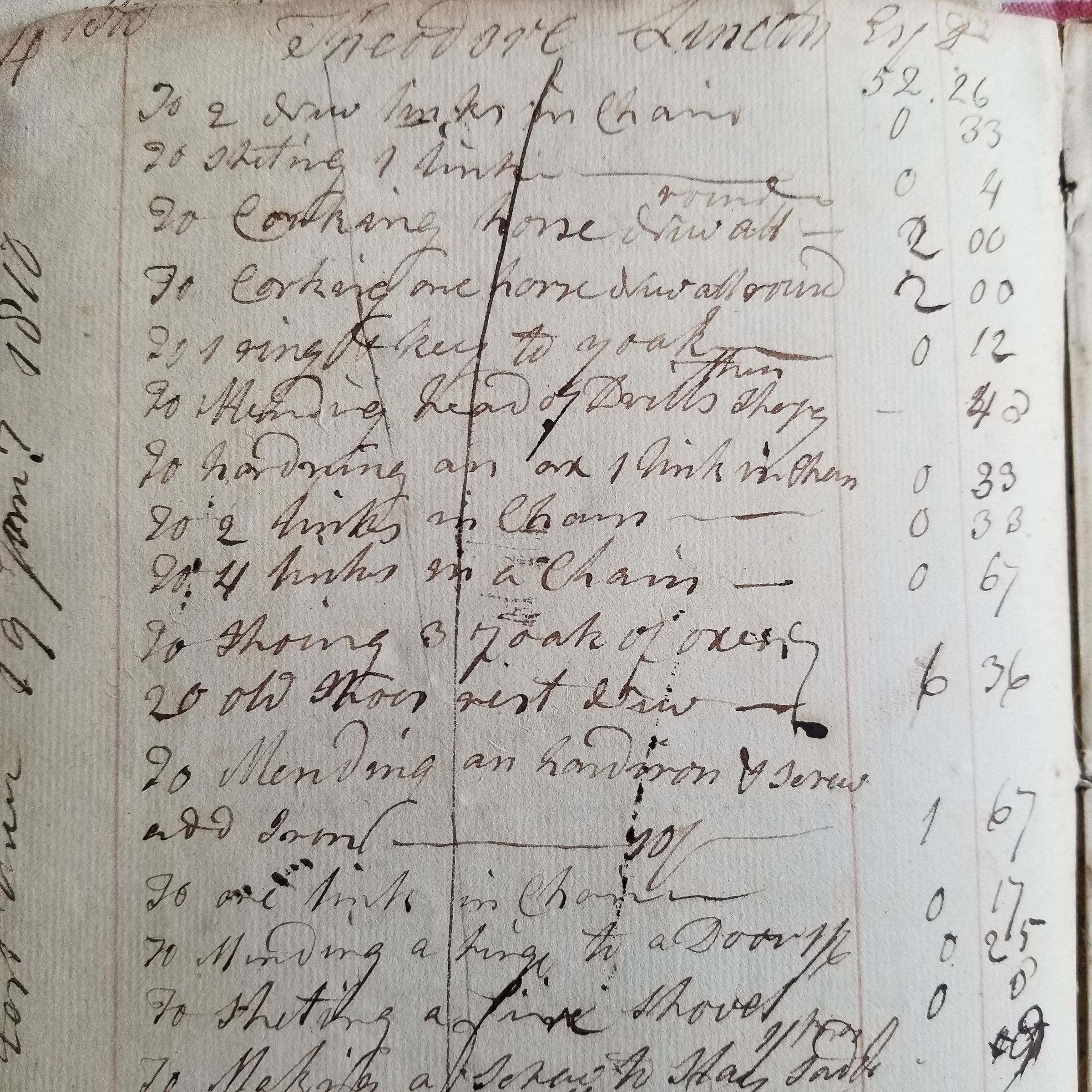 A ledger kept by William Kilby at his blacksmith shop on the Dennys River between 1810 and 1821, recording in detail the work he completed for his customers around the area.Context
